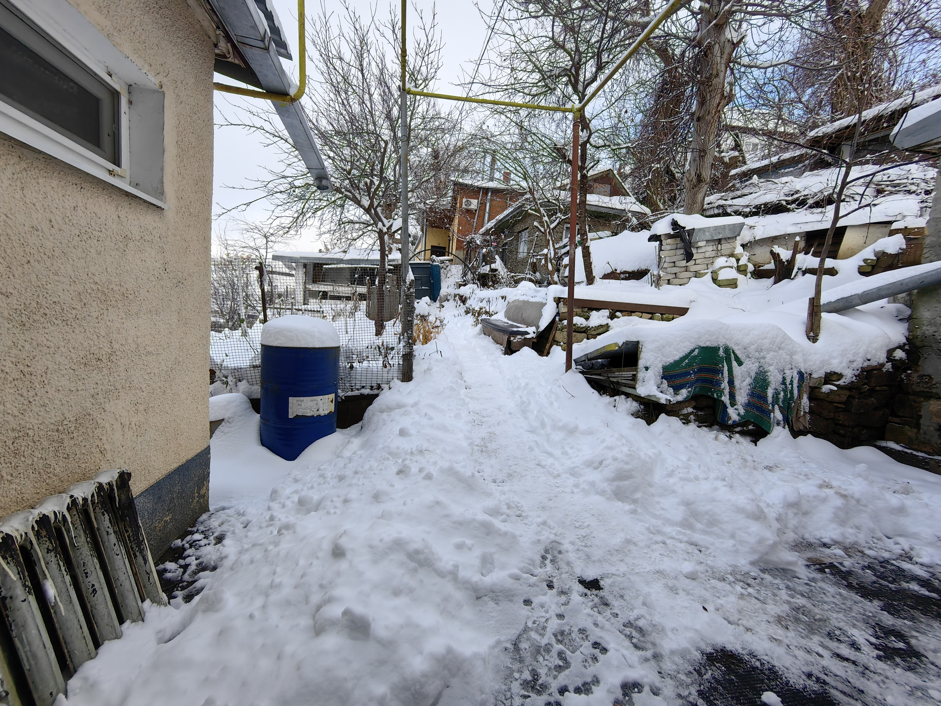 Находится на участке площадью 2,77 соток (в собственности). Состоит из 2х комнат, кухни, санузла и прихожей. Имеется подвал для хранения.