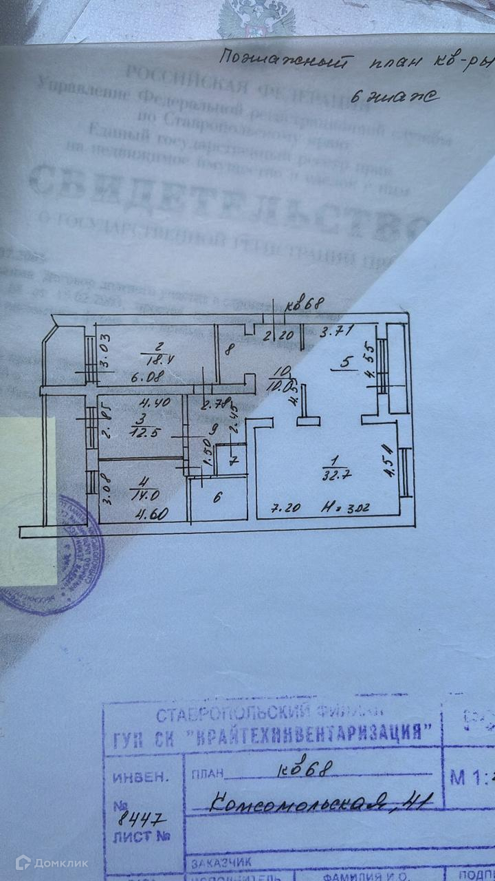 4-комнатная квартира, 124 м2, этаж 6 / 6, на продажу в Ставрополе, Комсомольская улица, 41