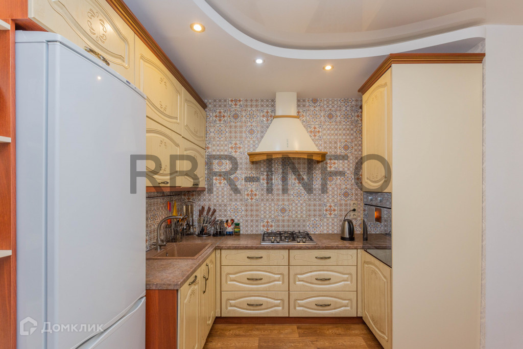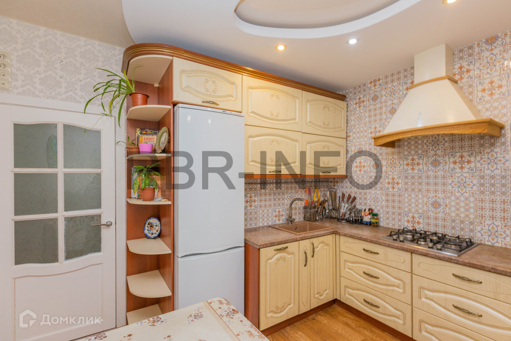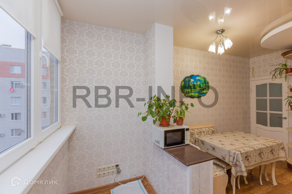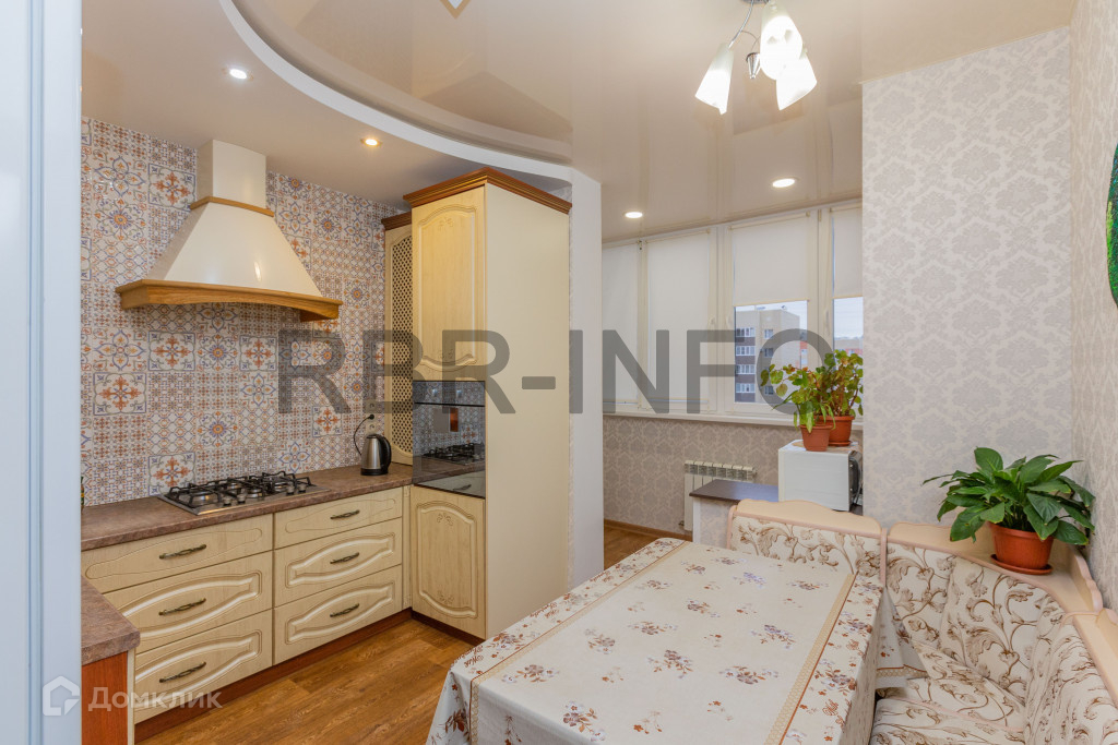 Площадь кухни составляет 10.3м2. Напольное покрытие линолеум, на стенах моющиеся обои. Встроен новый качественный кухонный гарнитур с фартуком для рабочей поверхности.