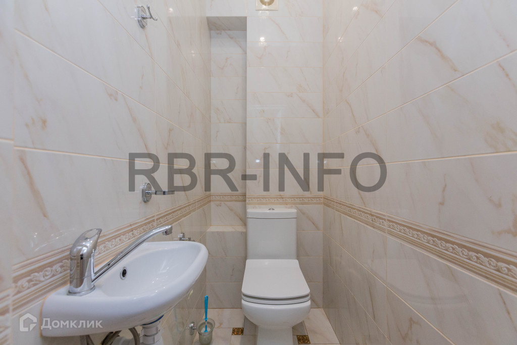 Уборная площадью 1.4 м2,плитка также керамогранитная, сделан в том же стиле, установлен отдельный рукомойник.