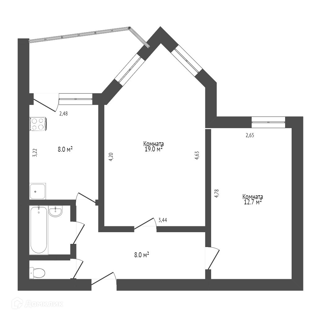 Общая площадь 54.1 м2