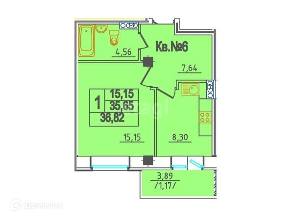 Общая площадь 36 м2