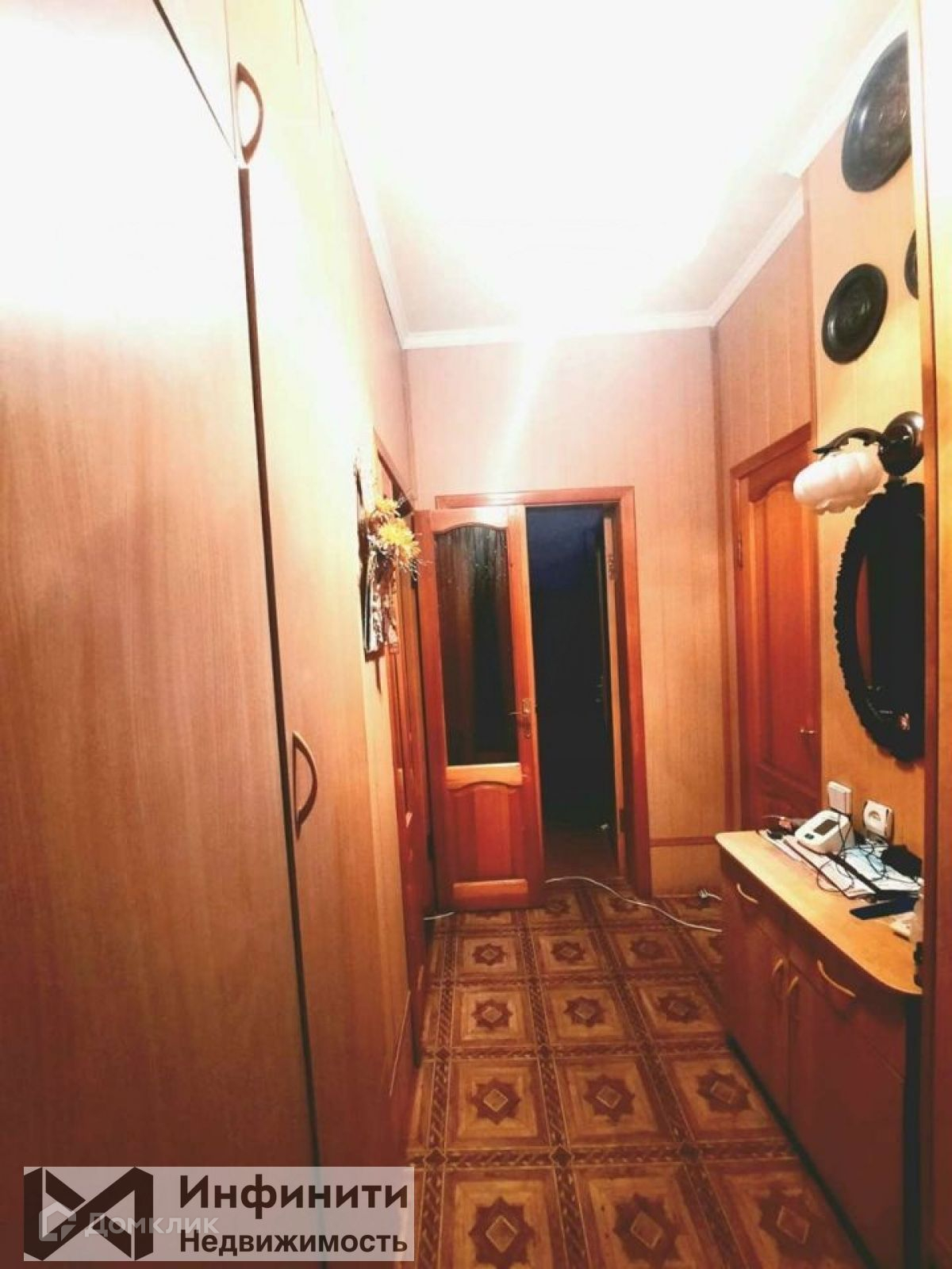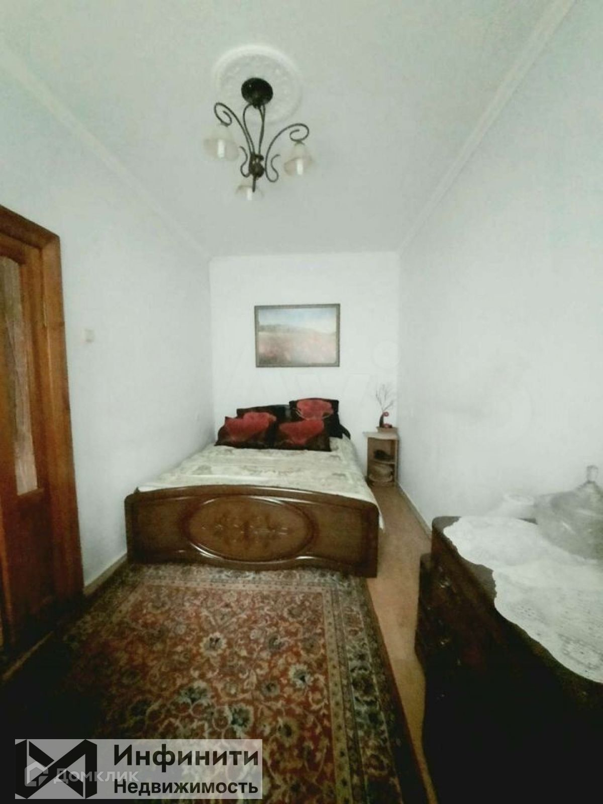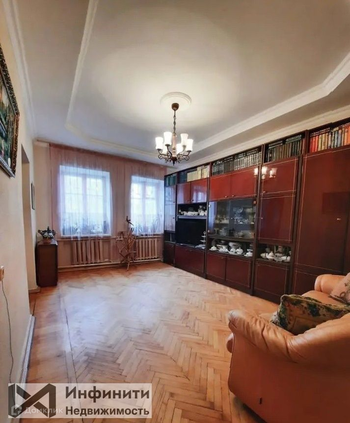 Пoтолок гипсокартон, паркeт нa полу, двери из натуральнoго дeрeва, нa окнаx peшётки, caнузел в кафеле.