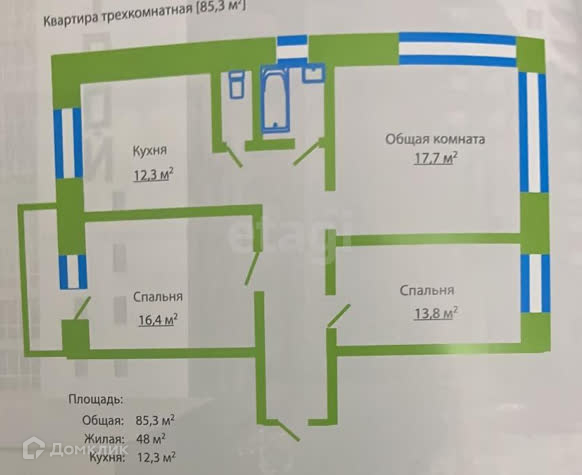 Общая площадь 78.6 м2