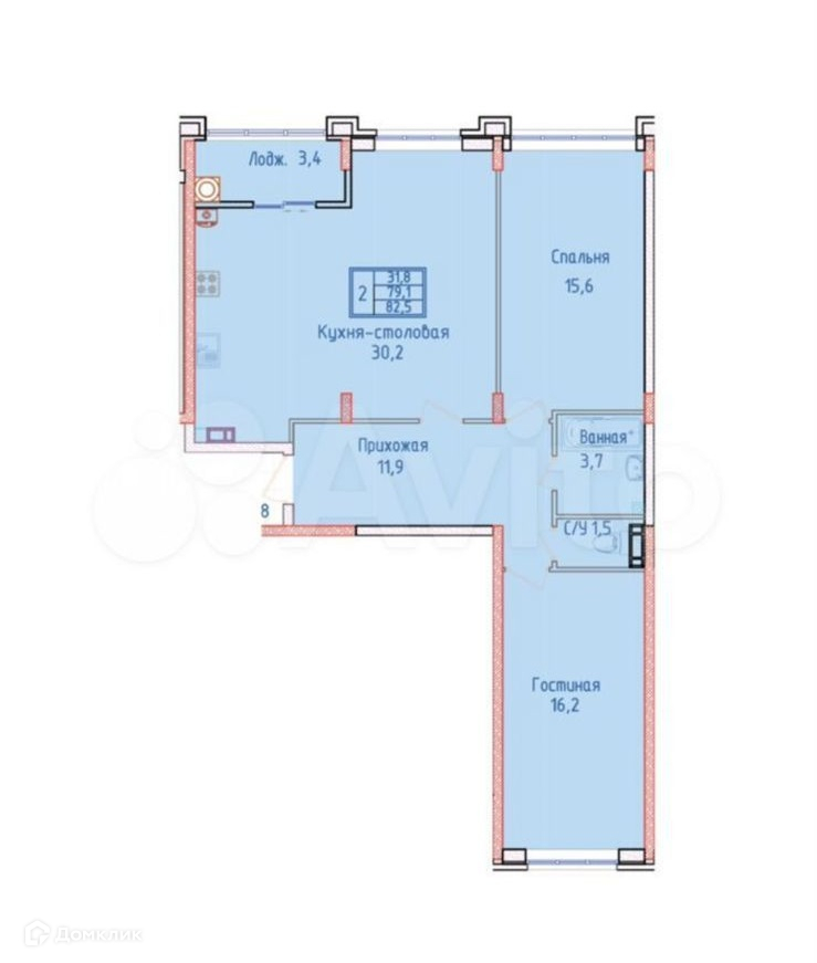 Общая площадь 81.5 м2