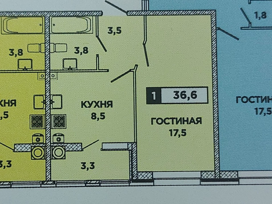 Общая площадь 36.7 м2
