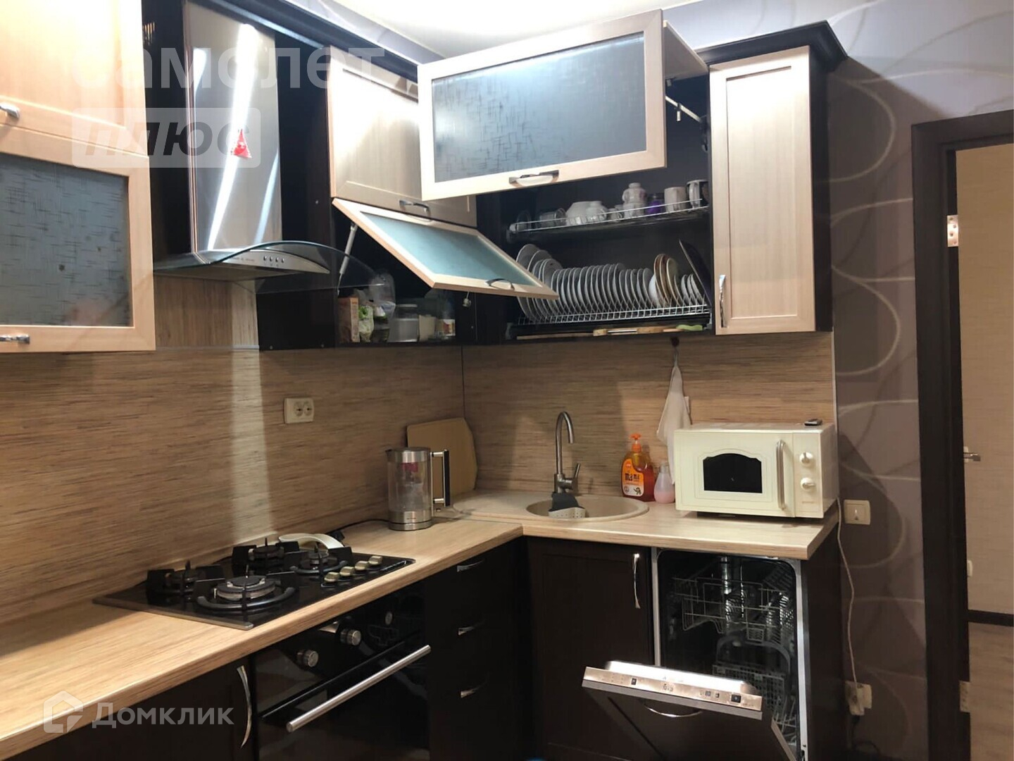 ###### Кухня полностью укомплектована: встроенные стиральная и посудомоечная машины, холодильник. Качественный кухонных гарнитур, стол и стулья.