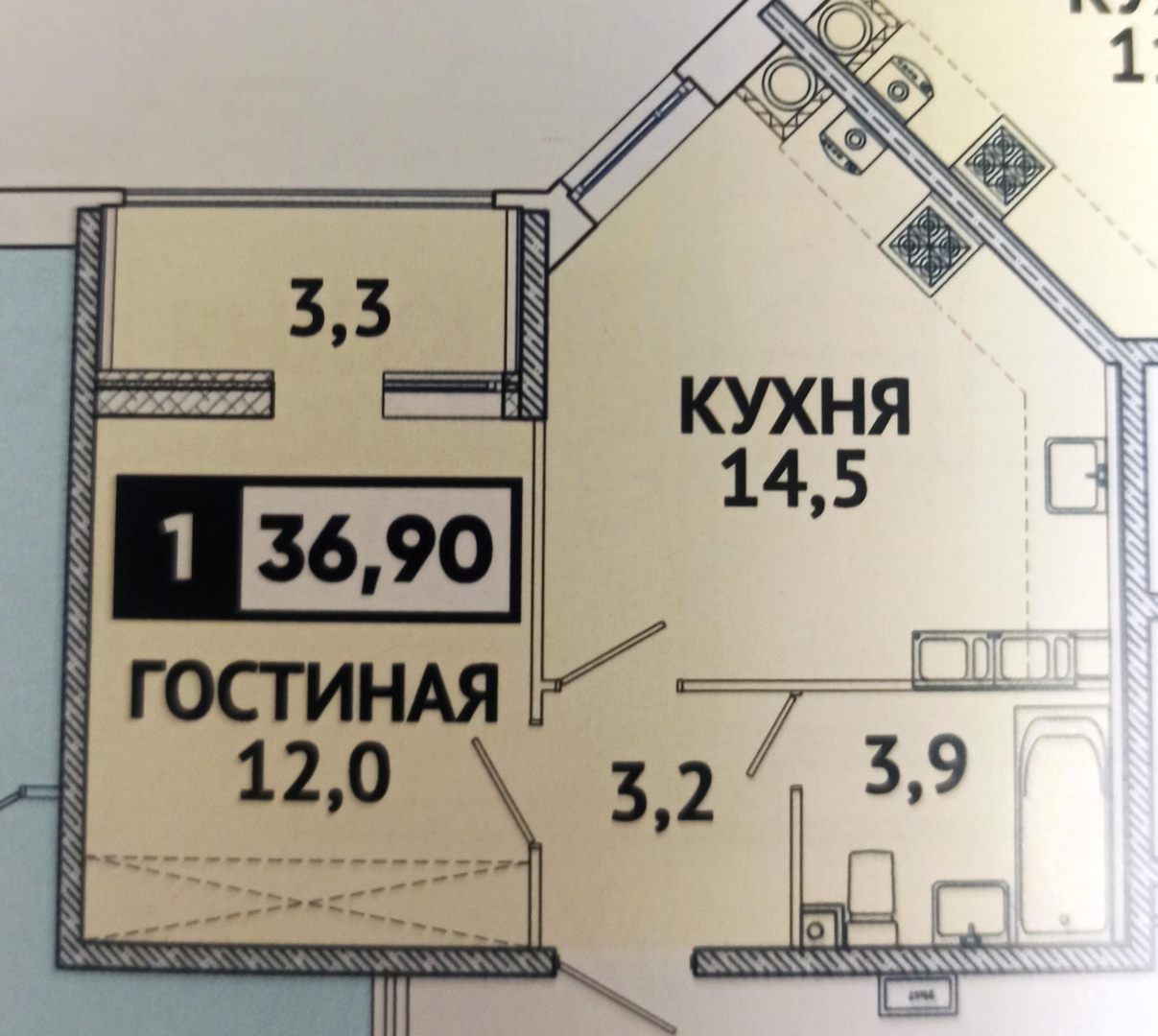 Общая площадь 37 м2