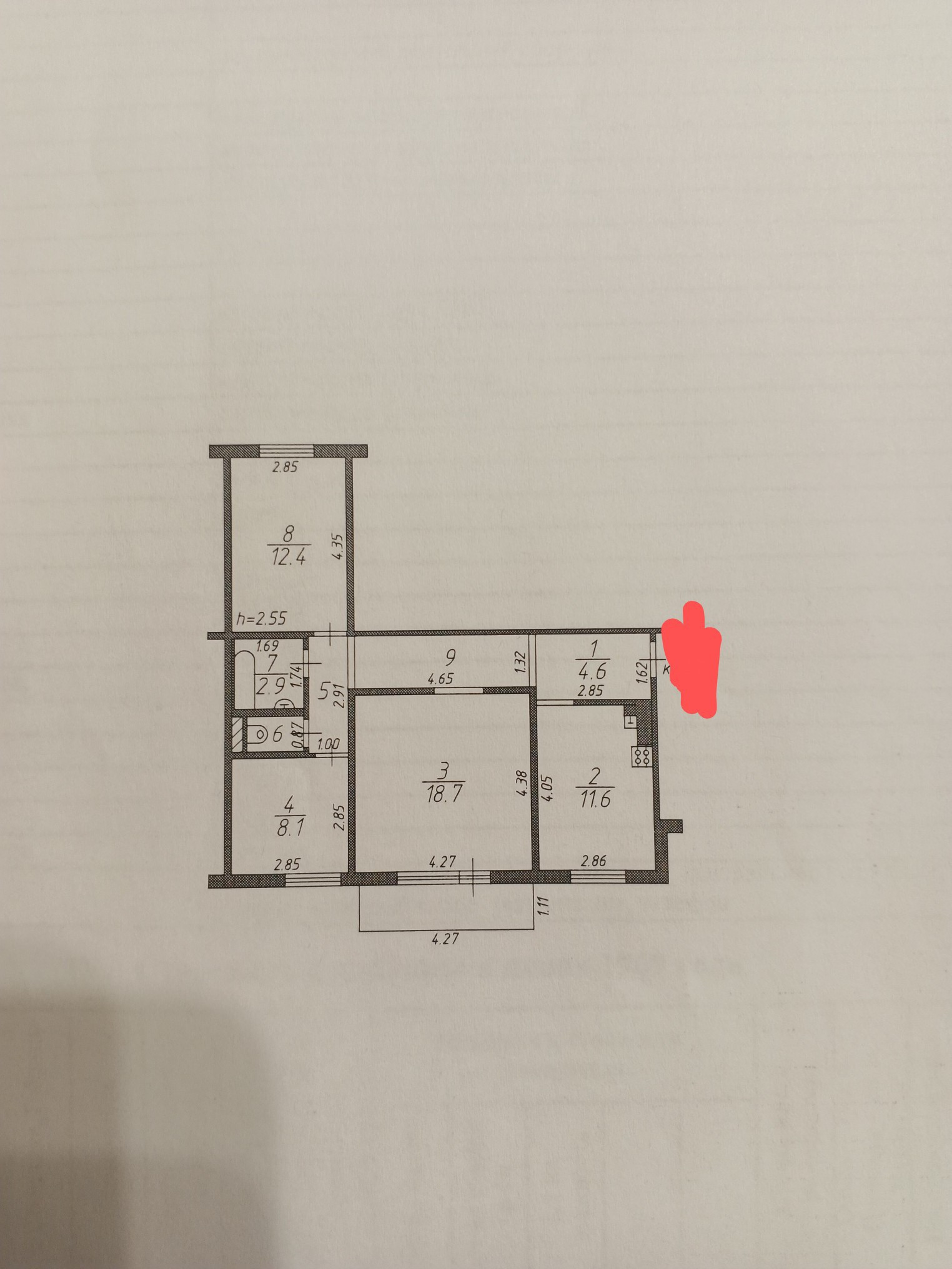 - площадь кухни 11.6 кв. м