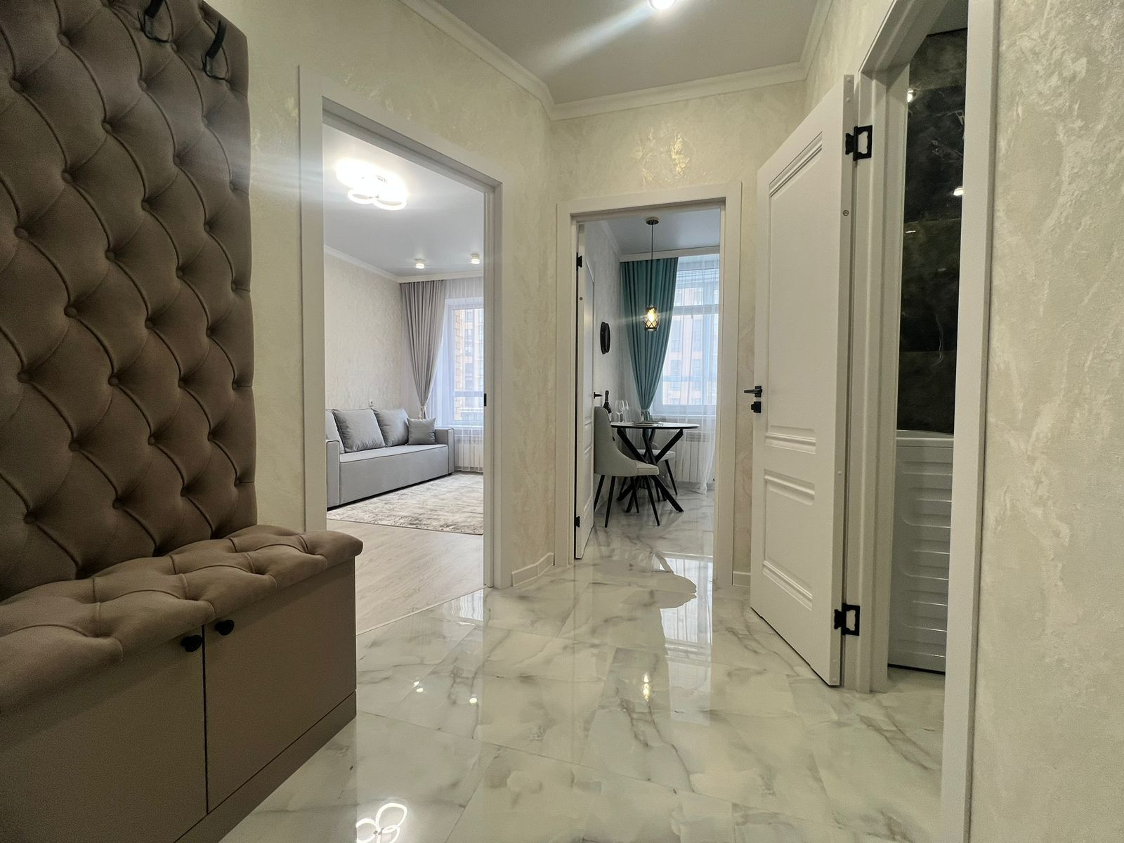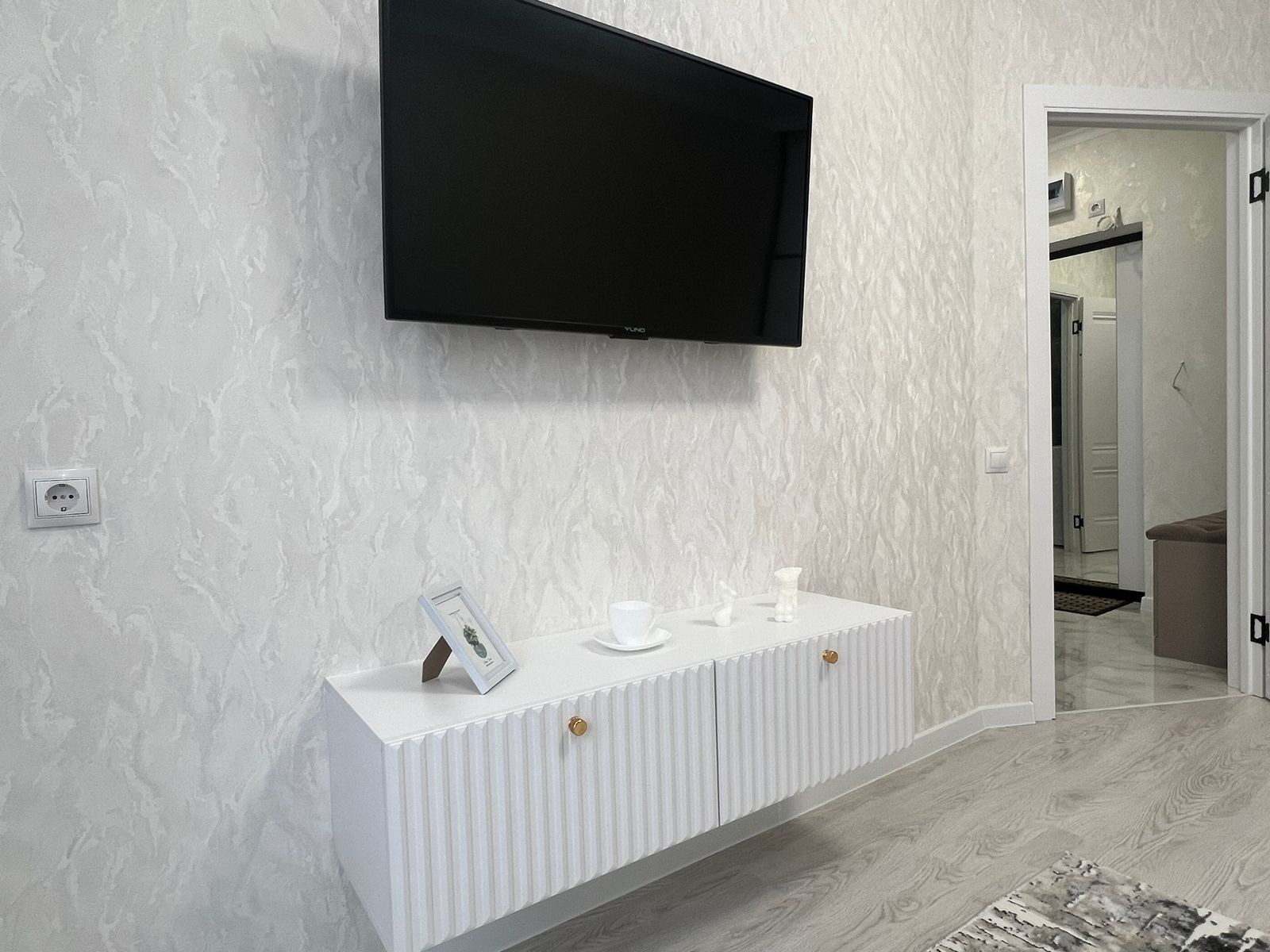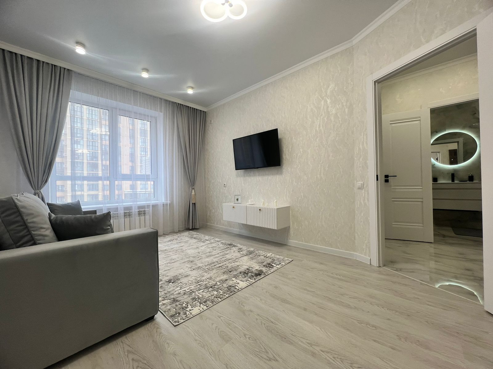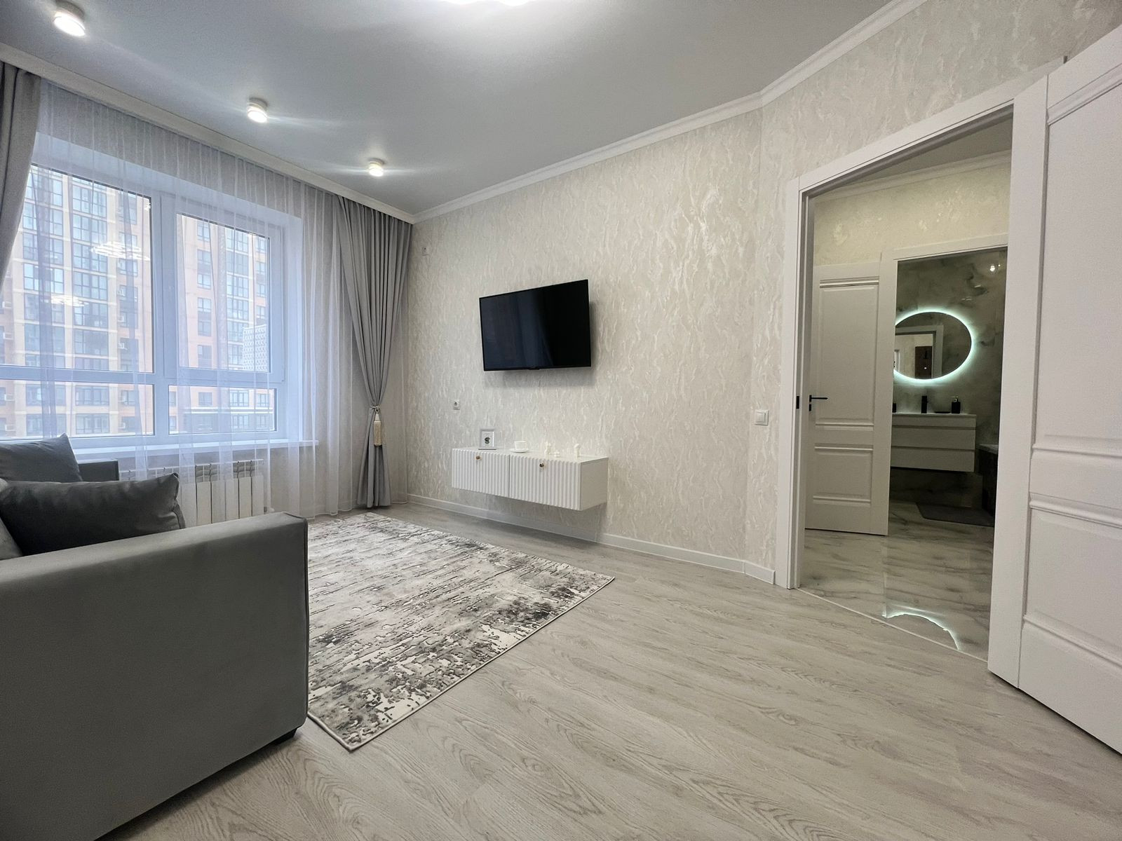 Большой вместительный шкаф купе в комнате, раскладывающийся диван, большой телевизор,текстиль во всей квартире, робот пылесос.