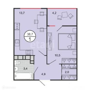 Общая площадь 39 м2