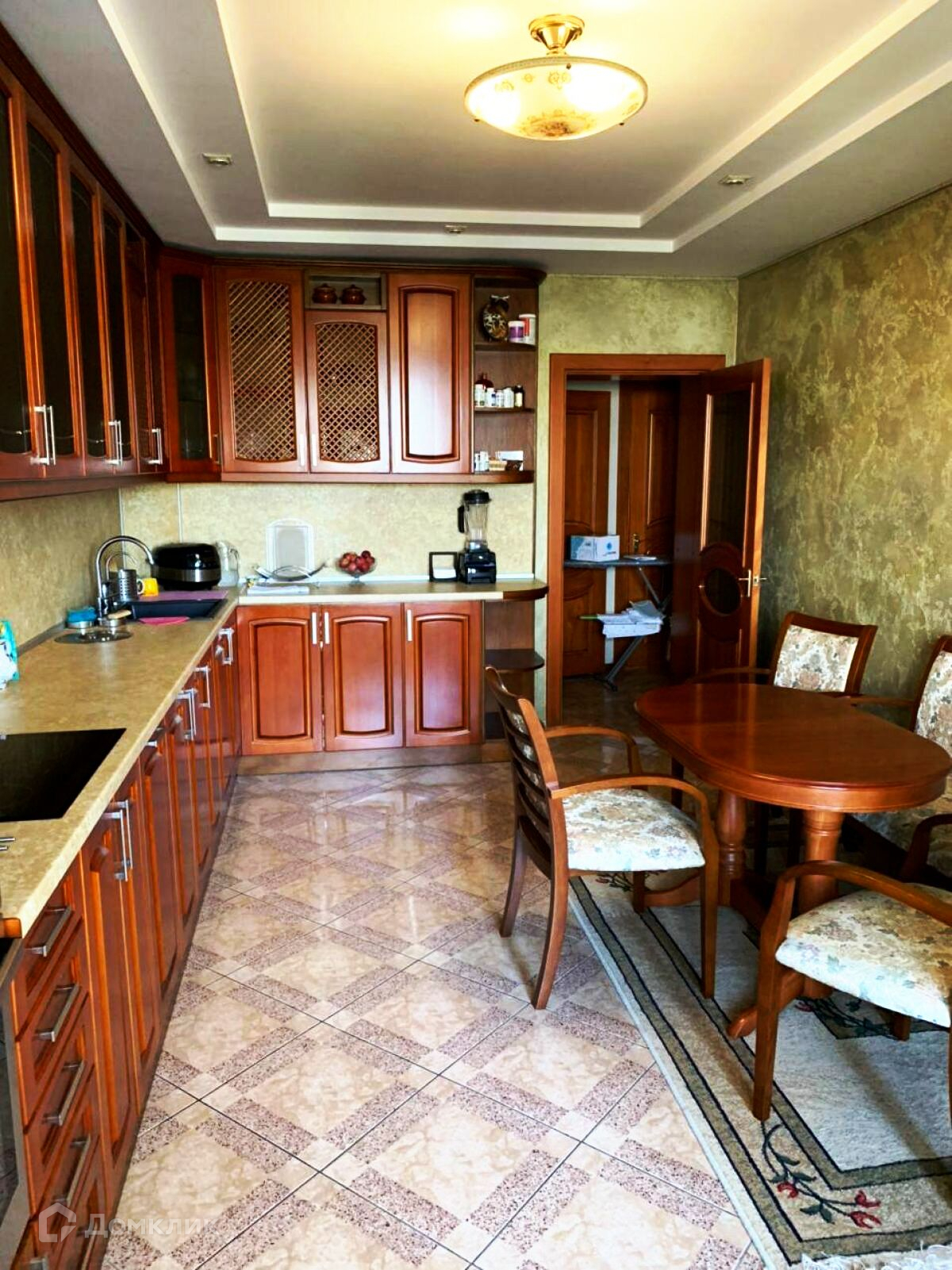 В квартире остаётся вся кухня и шкаф купе. В квартире качественный классический ремонт. Паркет в отличном состоянии, декоративная штукатурка, гипсокартонные потолки, двери и кухня массив дерева.