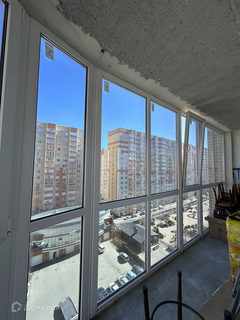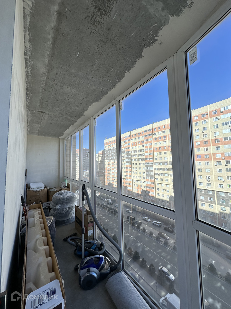 большой, шикарный балкон с панорамным остеклением, на котором можно сделать рабочий кабинет или зону отдыха.