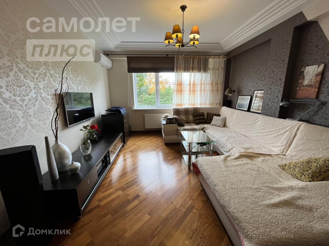 В квартире выполнена скрытая проводка к телевизору, муз.центру, к колонкам, также выполнено многоуровневое освещение.
