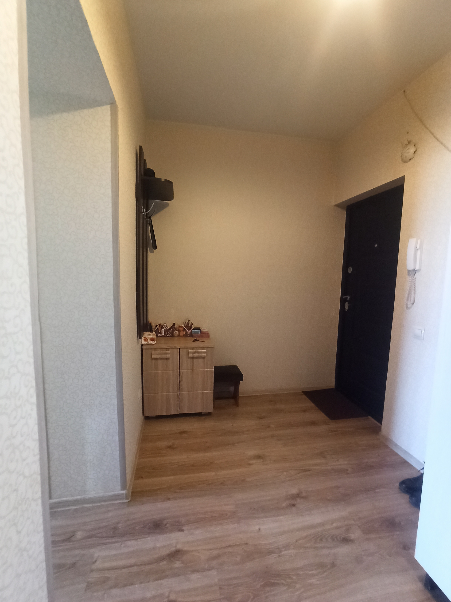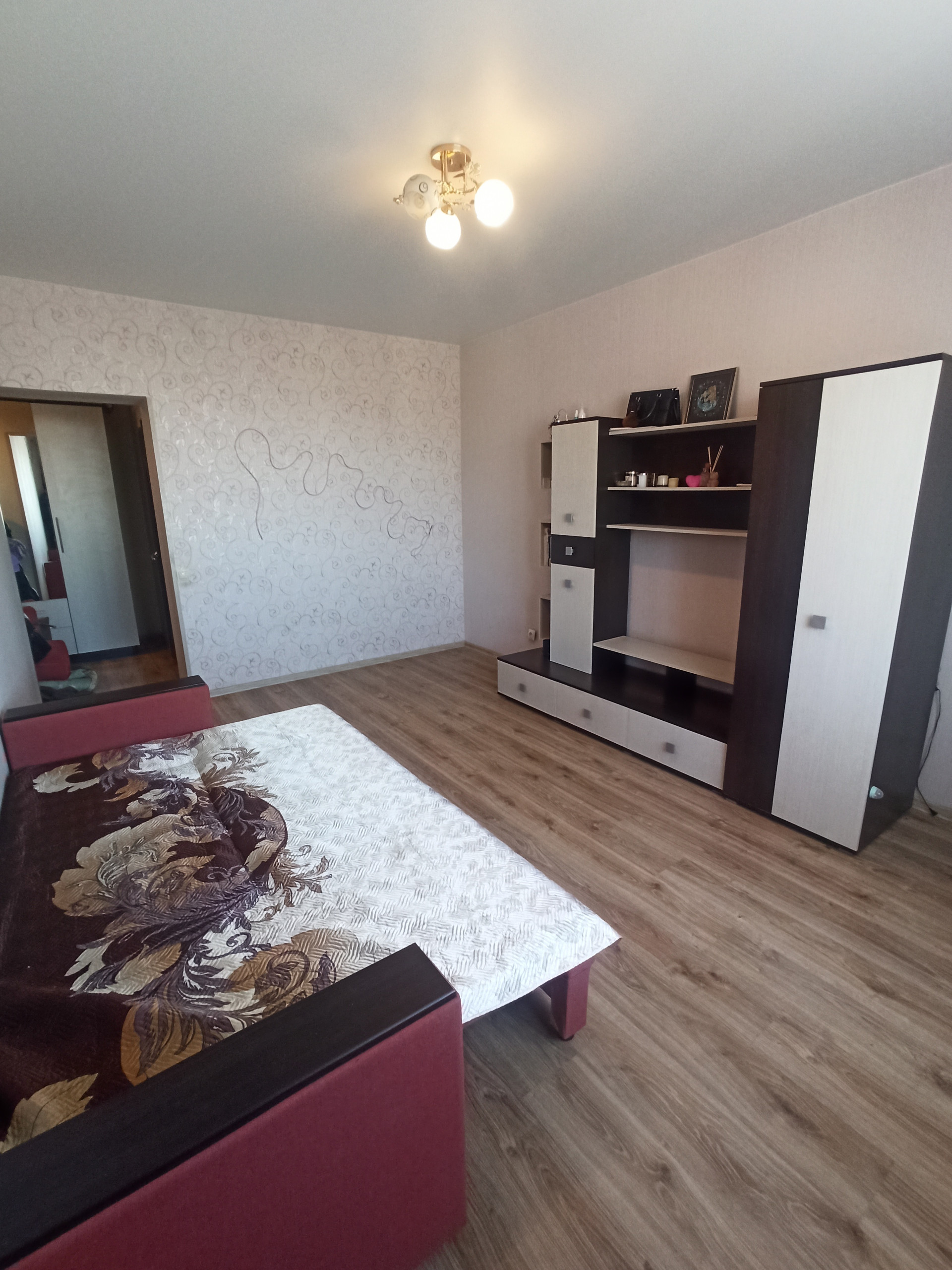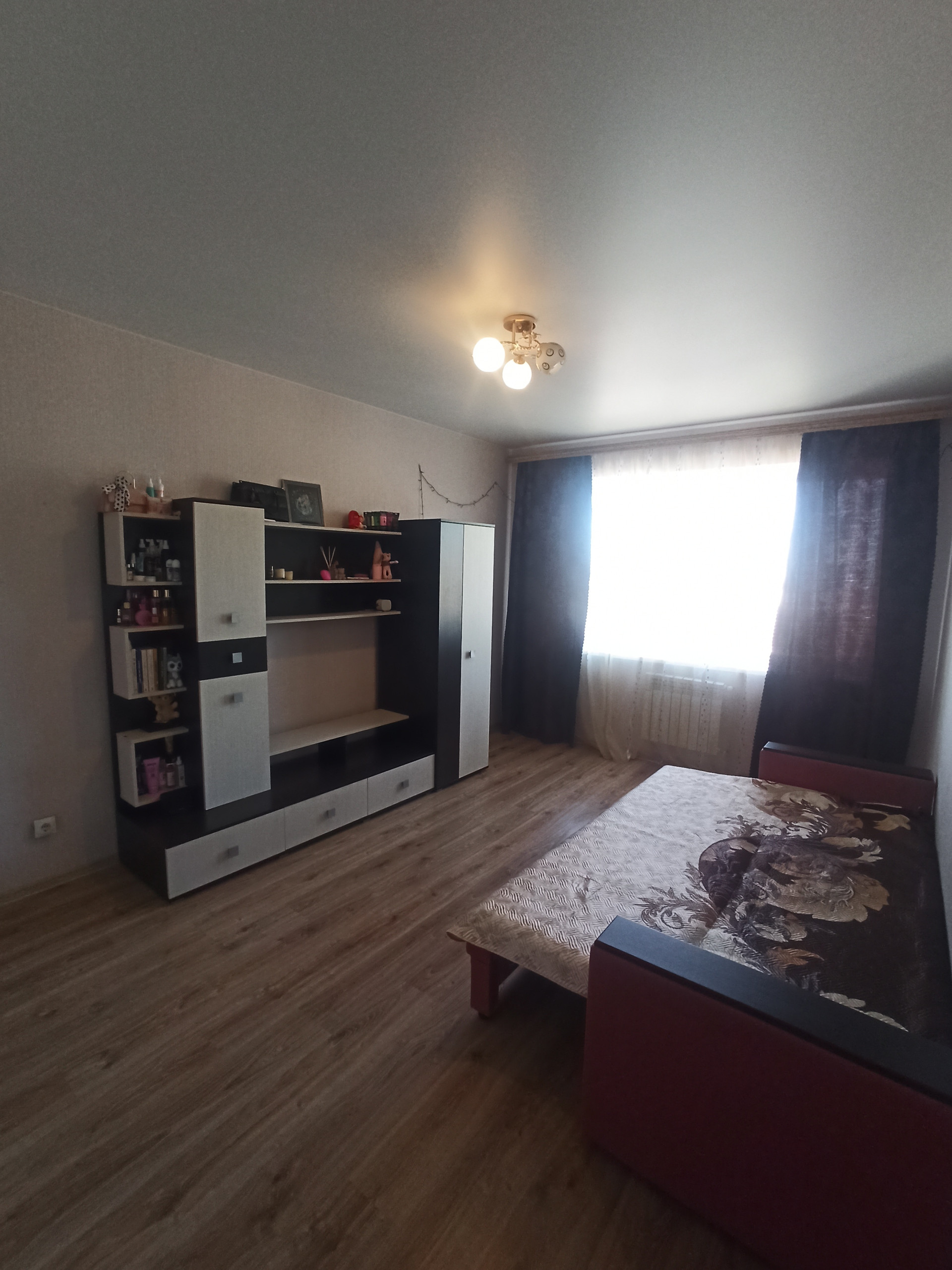 Квартира в хорошем состоянии. На полу в комнате, кухне и коридоре ламинат, в санузле кафель, натяжные потолки.