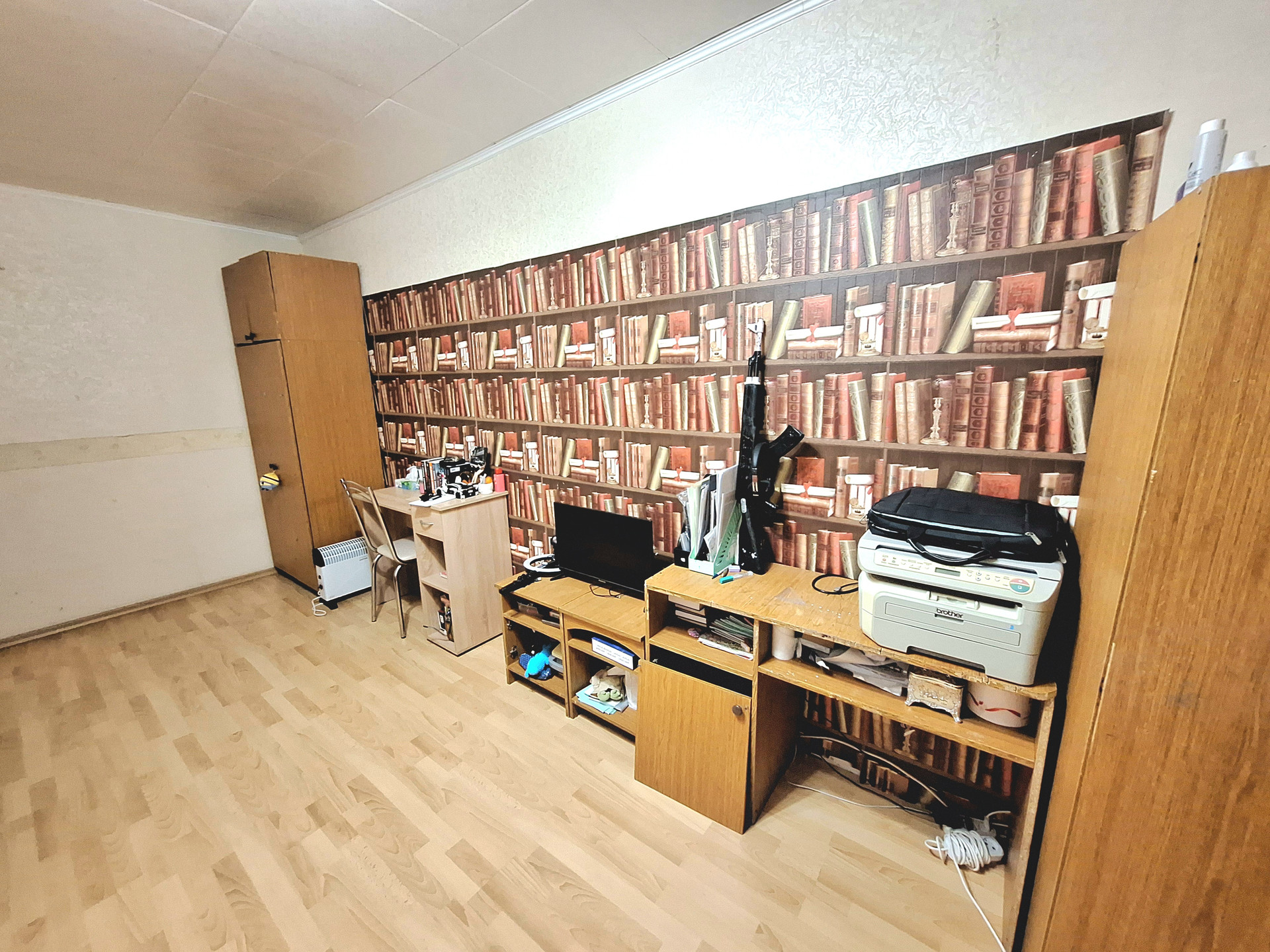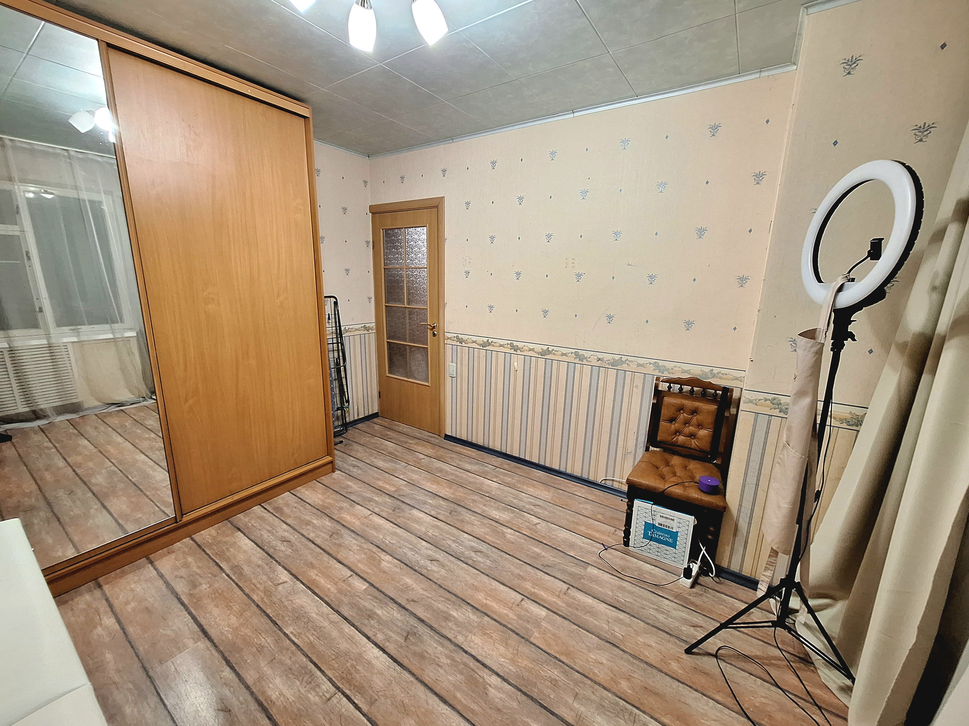 В квартире остаются большие и функциональные шкафы, диван, кресла, кухонный гарнитур шкаф-прихожая и холодильник.