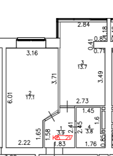 Жилая площадь 17.1 м2