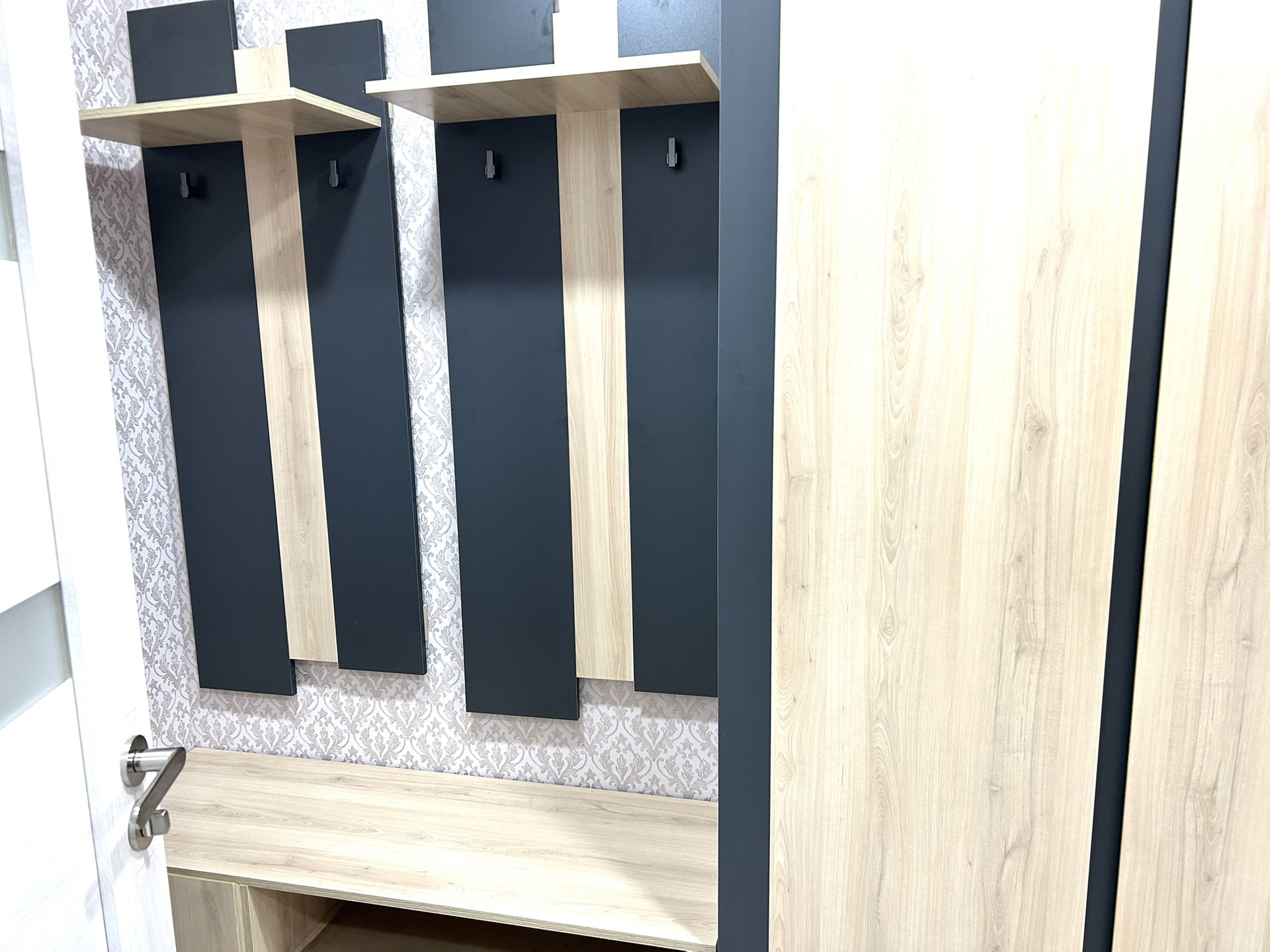 В прихожей установлены шкафы, комод, вешалки