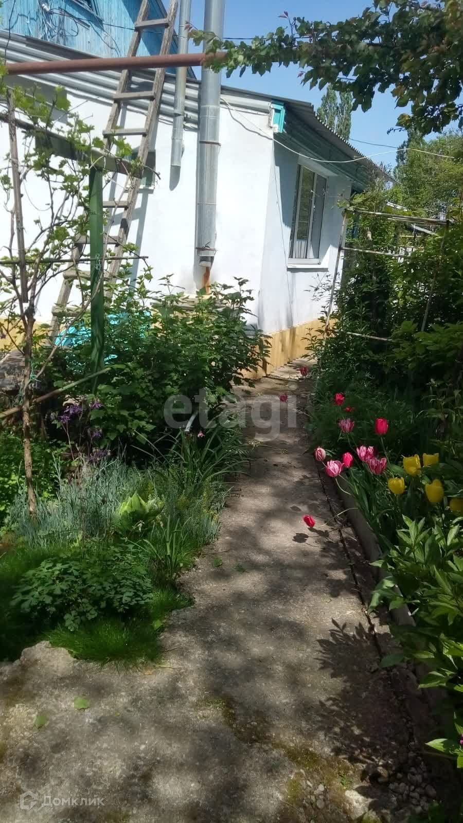 Посажены плодовые деревья , кустарники и цветы. Улица тихая.