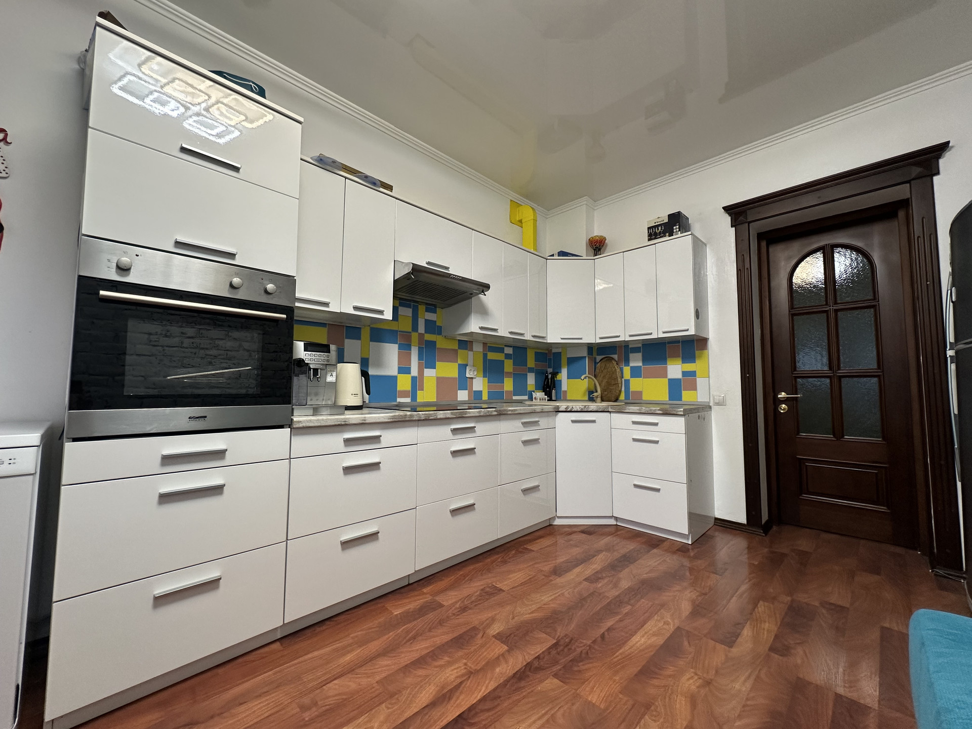 В квартире остается: встроенная кухня, посудомойка, телевизор на кухне, обеденный стол 180/80 см и 4 стула из натурального дерева (это не шпон, а именно массив), полностью мебель в спальне - кровать, комод, тумба под ТВ, большой гардеробный шкаф, шкаф в прихожей, встроенные 2 шкафа на лоджии для удобного хранения, в спальнях жалюзи блэкаут.