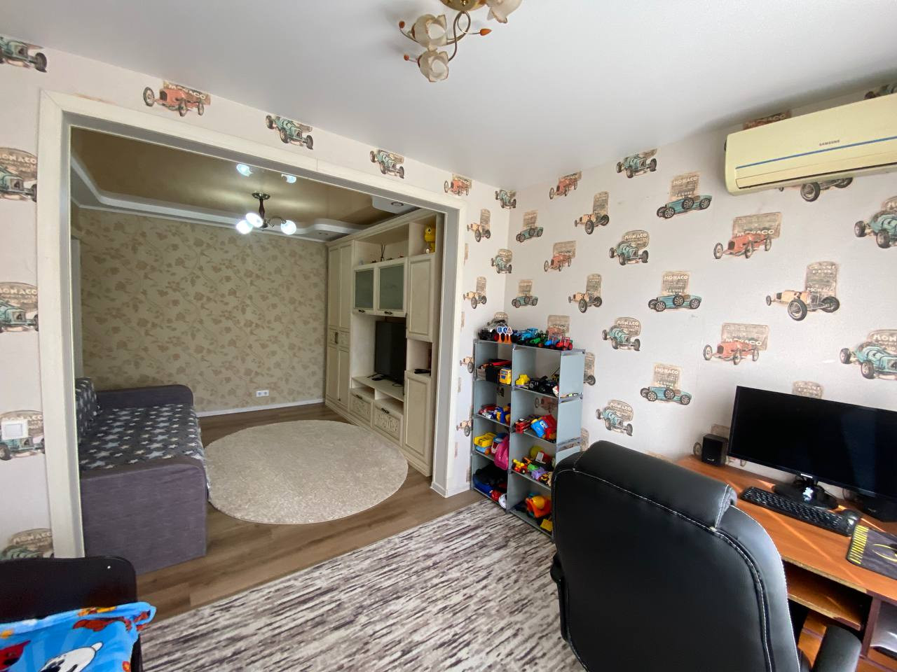 На стенах обои, на полу качественный ламинат, кафель в сан. узле.