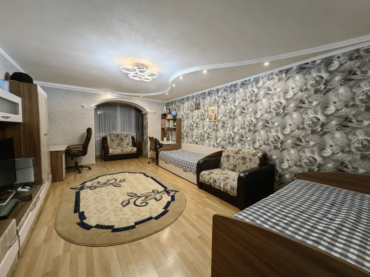 Две изолированные уютные комнаты (28кв.м и 17 кв.м) и кухня-гостиная (площадью 27кв.м).