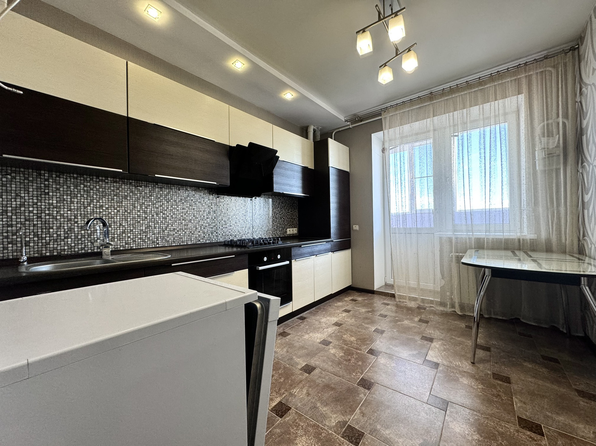 просторная кухня. Кухонный гарнитур со встроенной техникой: