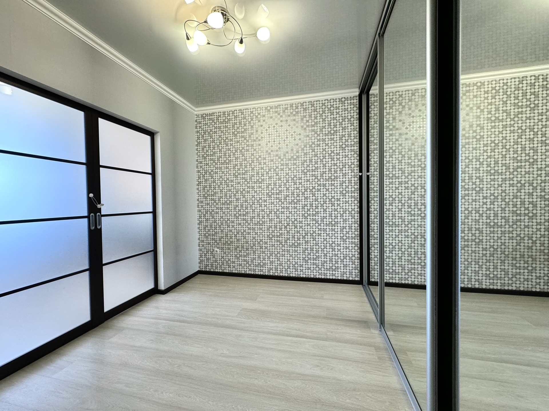 комната разделена на 2 зоны (гостиная зона и спальня, изолирована раздвижными дверьми)