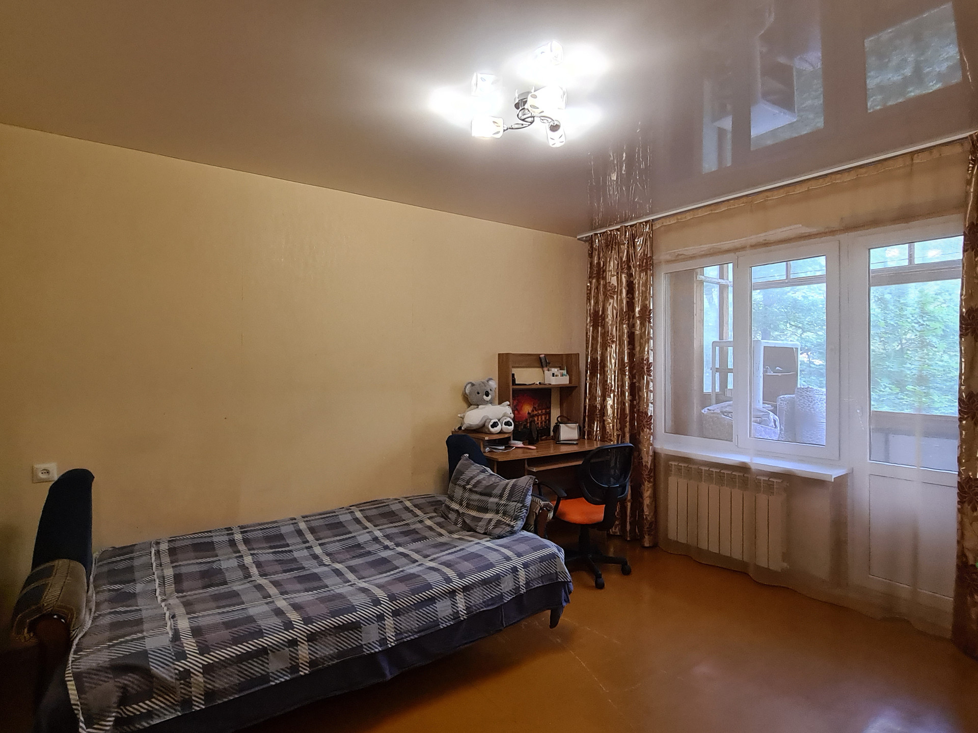 Ремонт освежили частично- заменены все стеклопакеты, в комнате и кухне натяжные потолки, ванная комната в плитке. В целом квартира в чистом, опрятном состоянии, можно зайти и жить.
