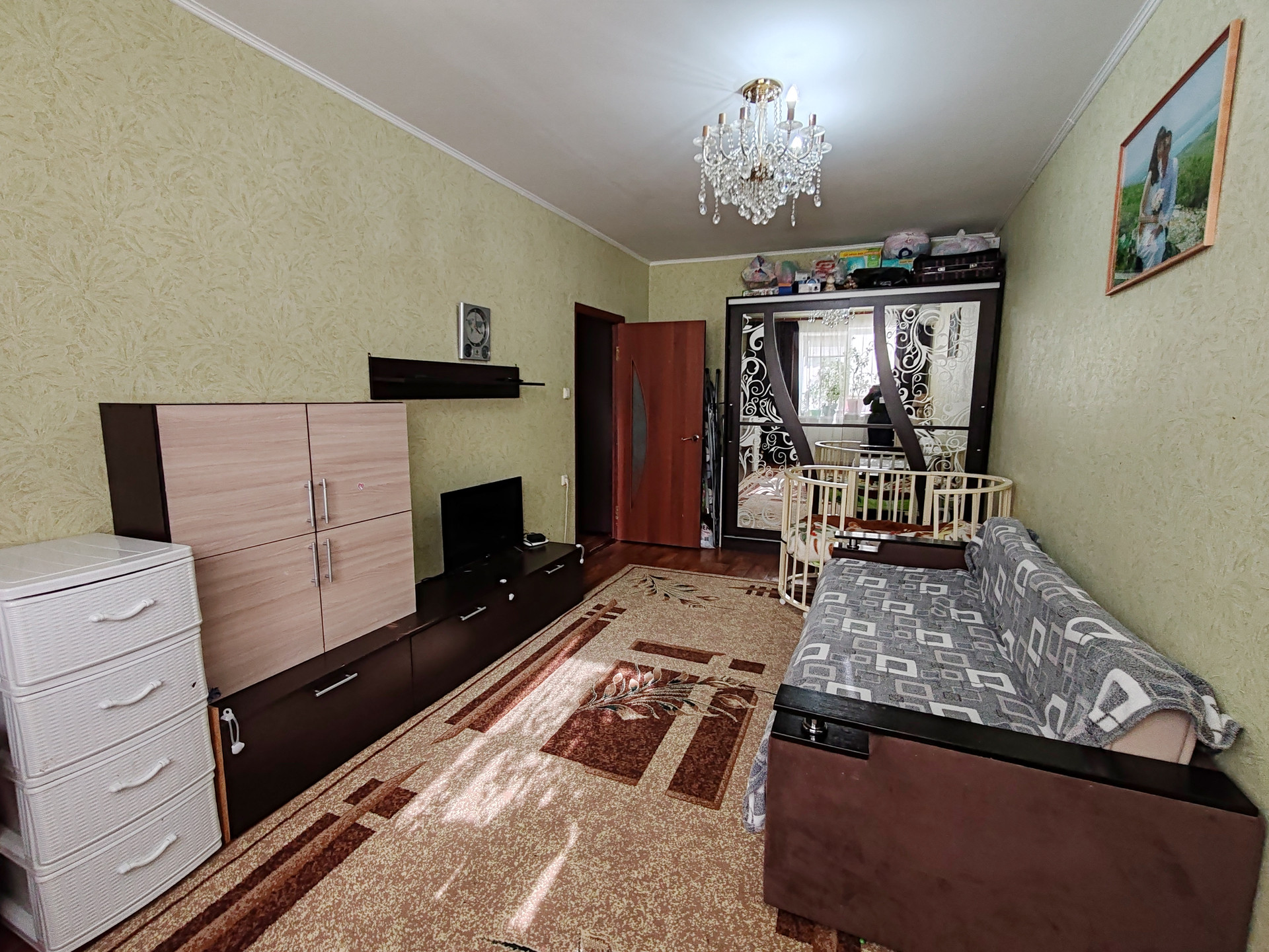 + ОСТАЕТСЯ МЕБЕЛЬ И ТЕХНИКА -: кухонный гарнитур,сплит-система, шкаф в прихожей, в гостиной стенка-горка.