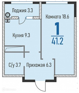- Площадь 41,2 кв м