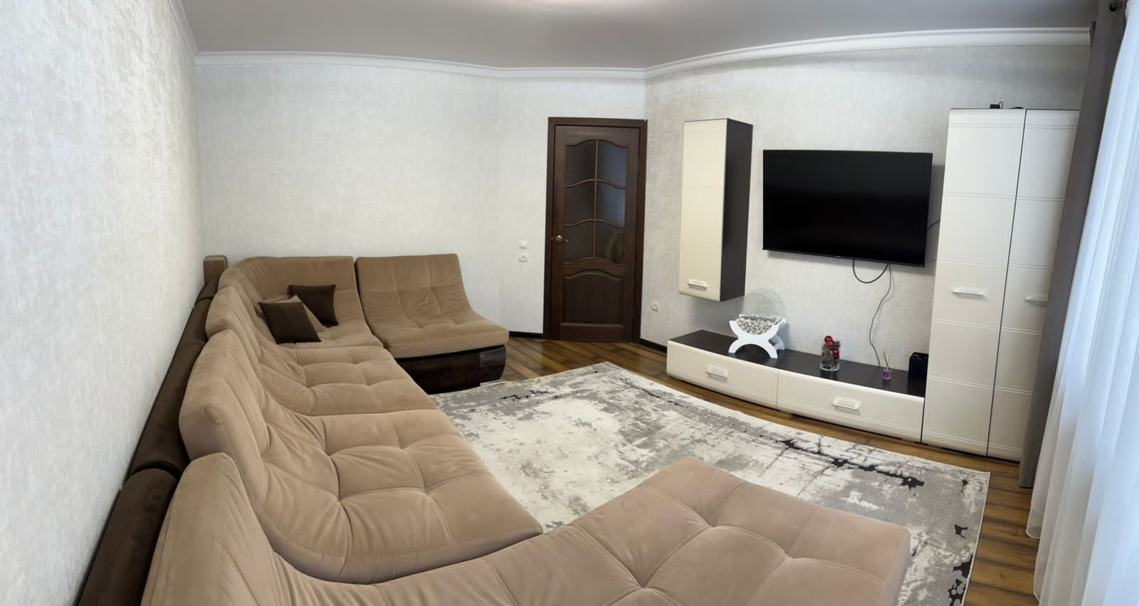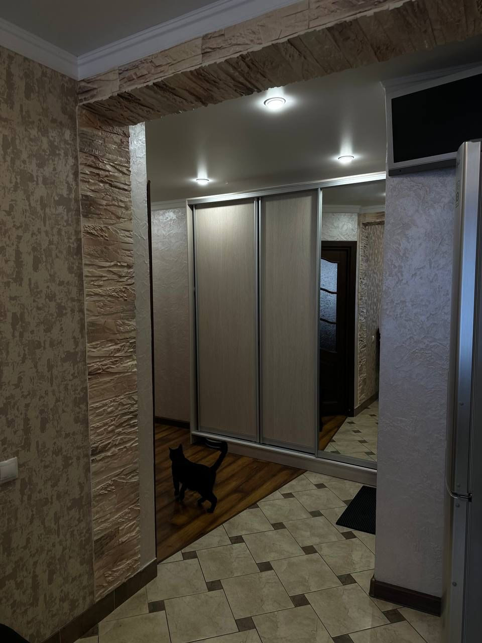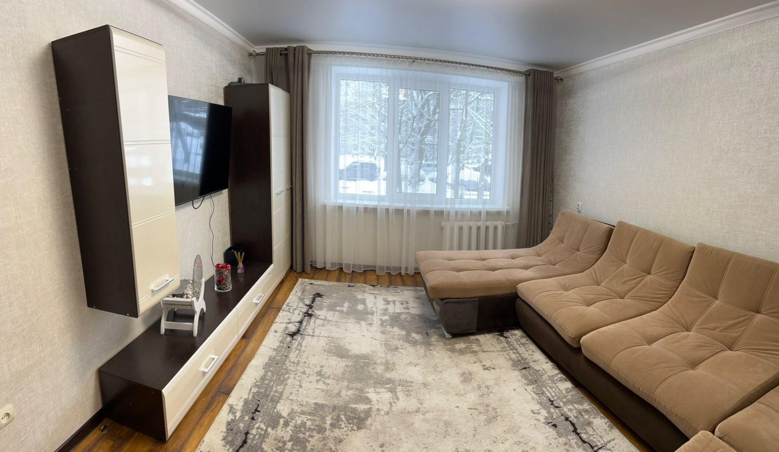 Продаётся трёхкомнатная квартира с мебелью  без техники, кухня, шкафы купе, подвесные полки, большой диван, стенка.                                                                     В спальном районе, между 35 и 29 школами, рядом детская площадка,  аллея, по обе стороны дома магниты и пятёрочка, небольшой мини-рыночек  (стометровка), куча разных магазинов  пункты выдачи озон и wildberries в 20 шагах от дома. Качественный свежий ремонт, на кухне стена от пола до потолка  кафель kerama marazzi, двойная дверь, кладовка 4м2 со стеллажами. Плюсом будет парковочное место в подарок!              В собственности 11 лет, обременений нет. Детей до 18 лет прописанных тоже нет!