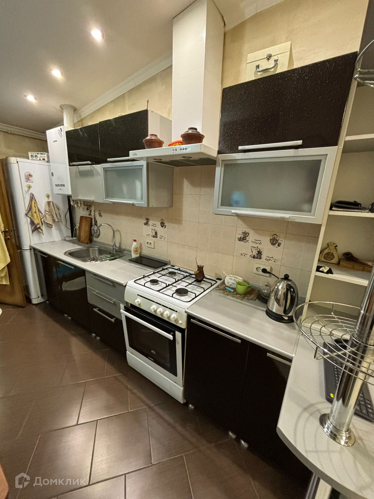 Два кондиционера, тёплые полы, хороший двухконтурный котёл.