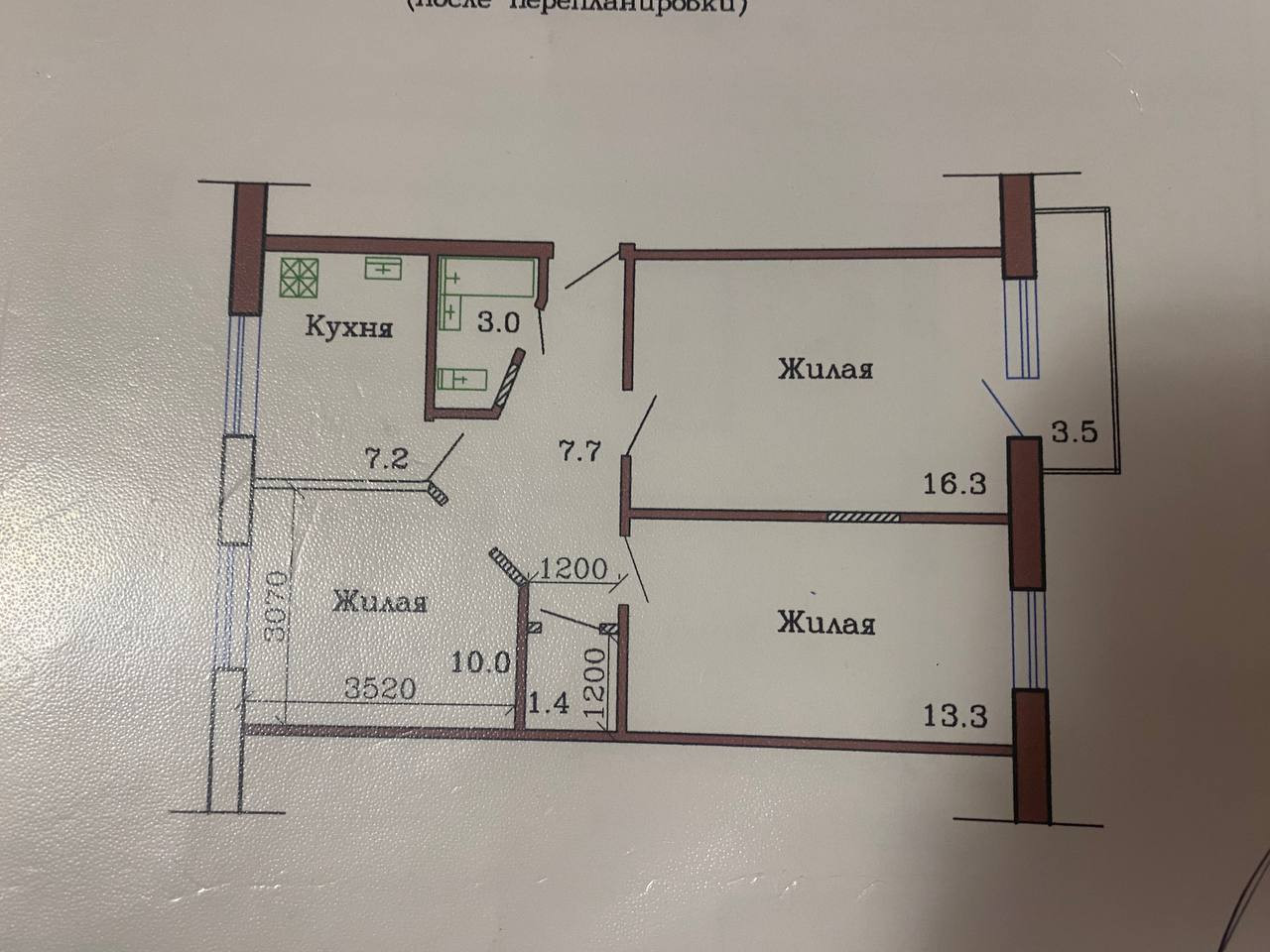 Площадь кухни 7.2 м2