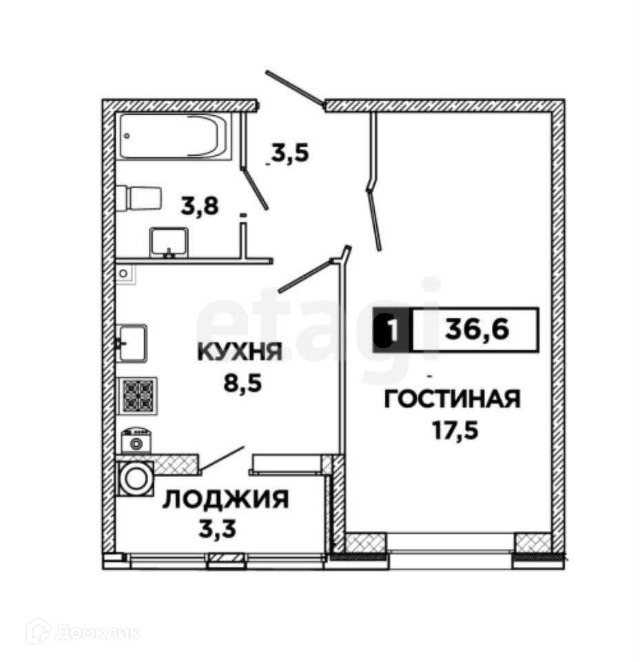 1-комнатная квартира, 36.5 м2, этаж 7 / 12, на продажу в Ставрополе, улица Николая Голодникова, 4к1