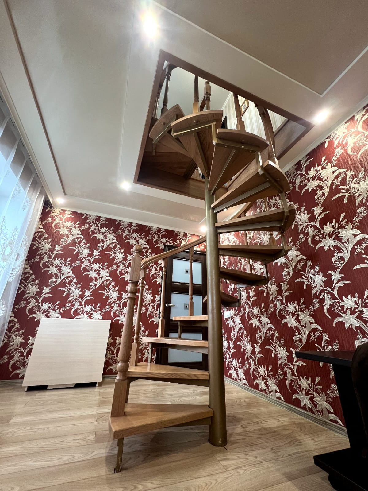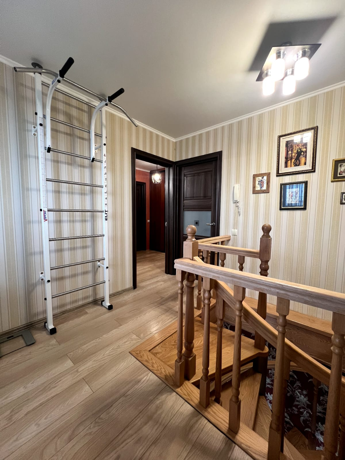 На первом этаже прихожая, кухня, санузел с гидромассажной ванной, гостиная и большой угловой балкон.
