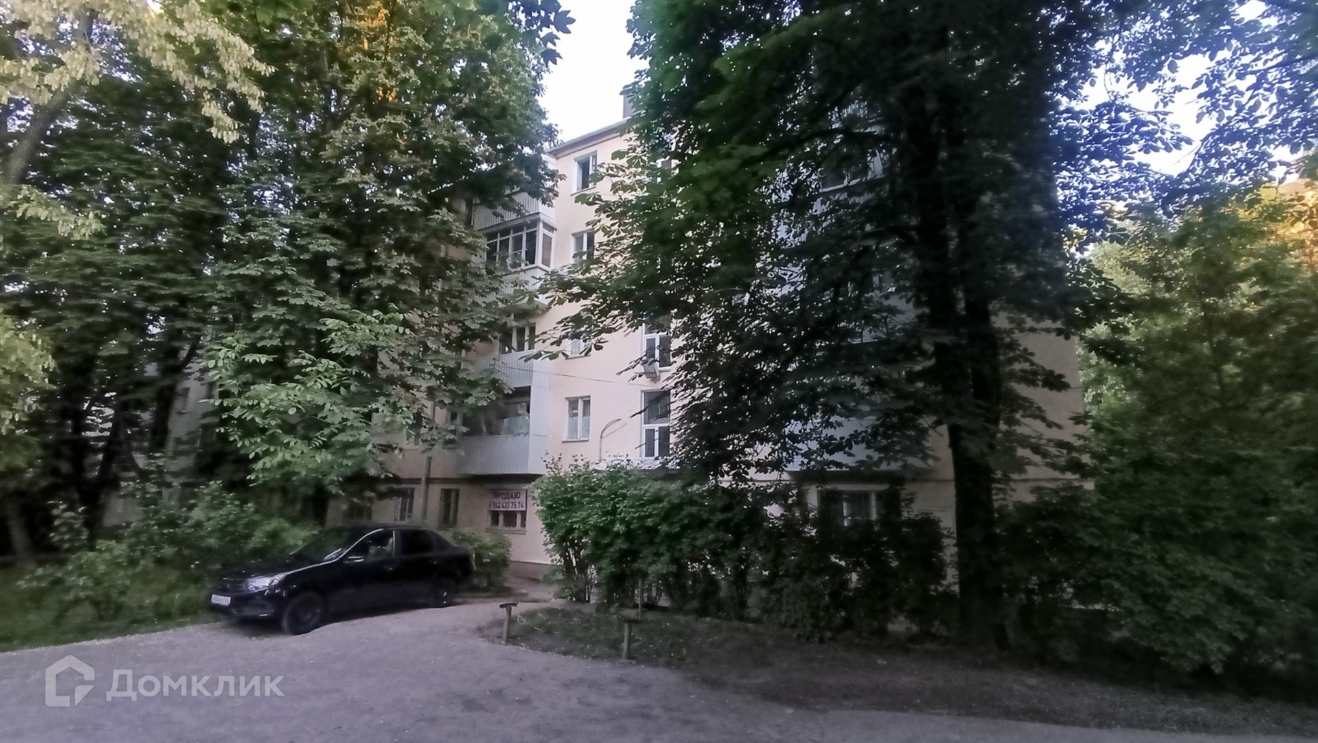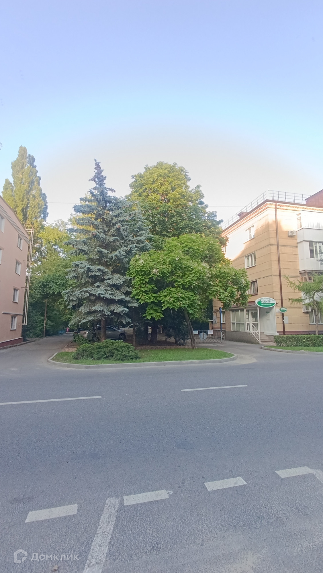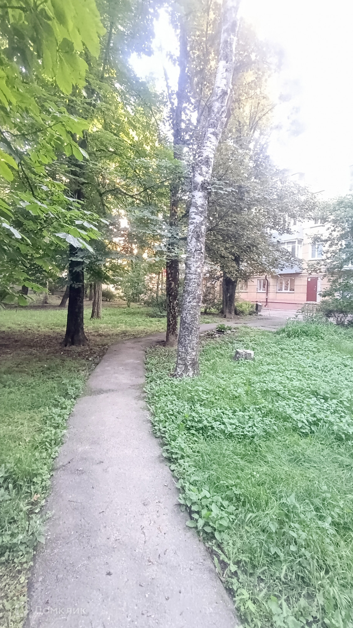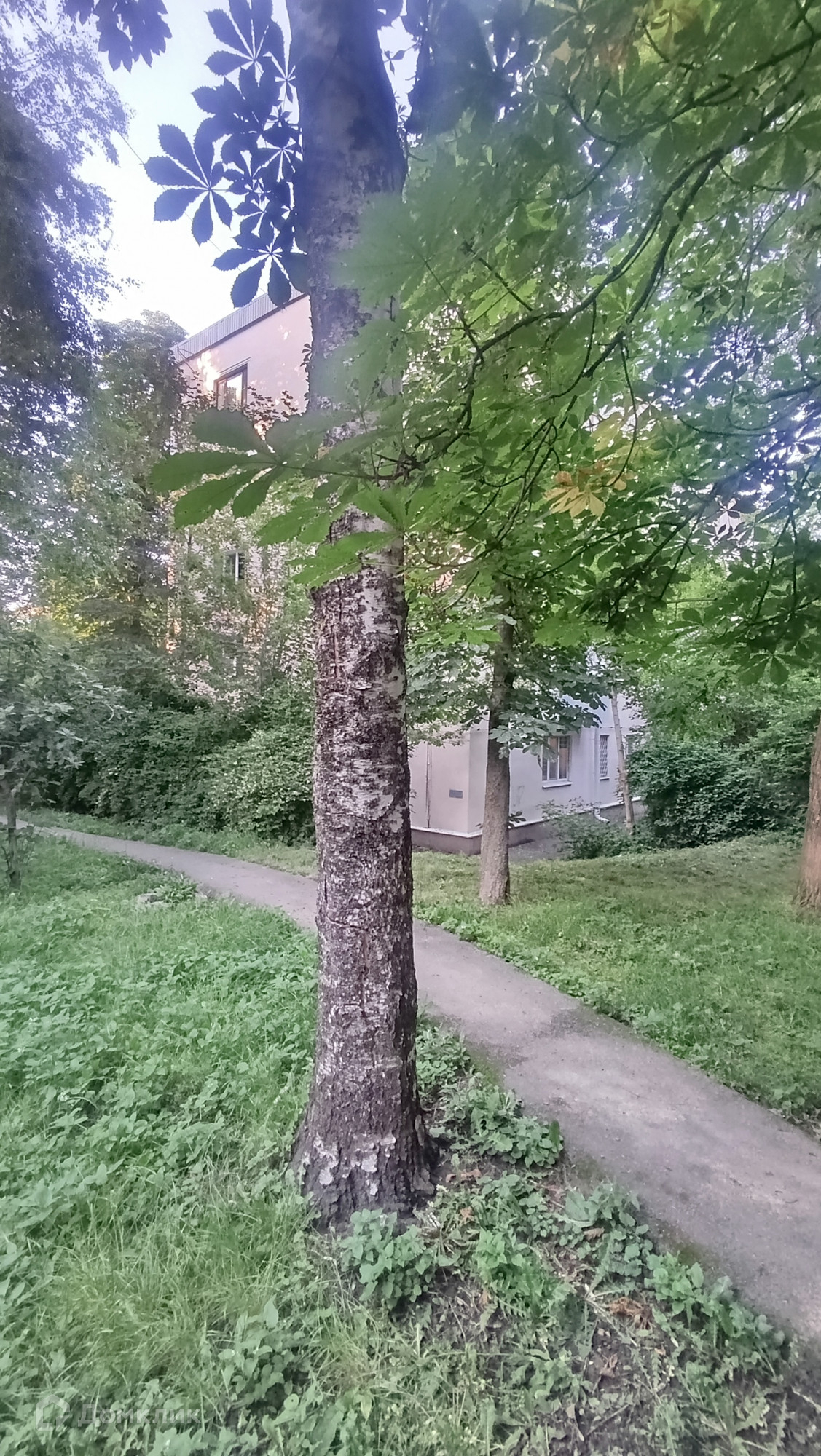 Тихий зеленый двор, парковка во дворе.