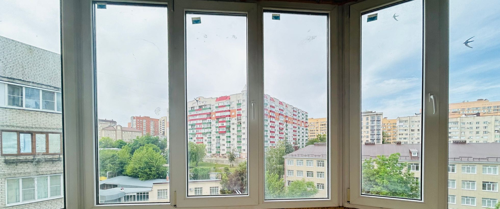 Окна квартиры выходят по обе стороны дома (север и юг).