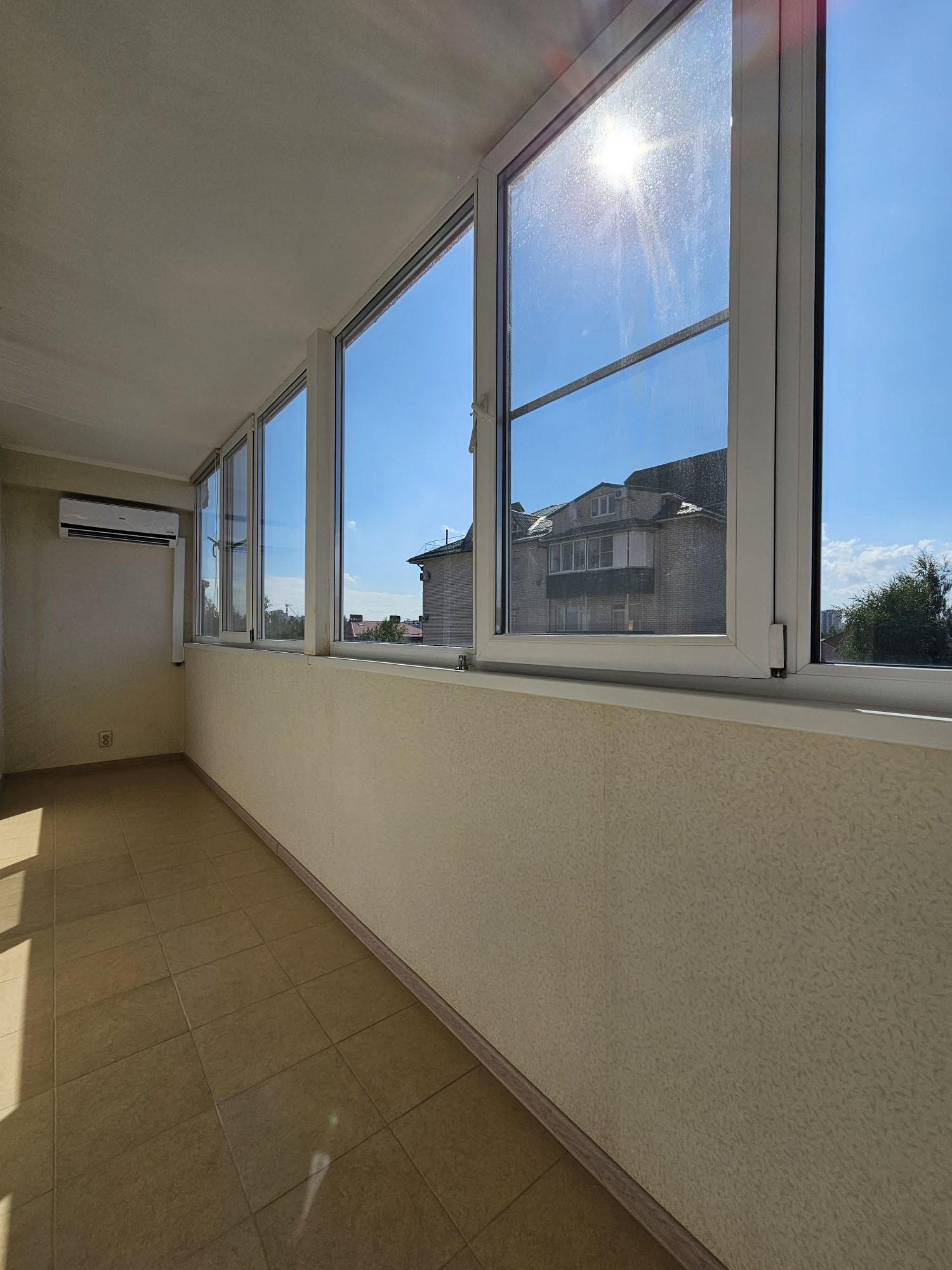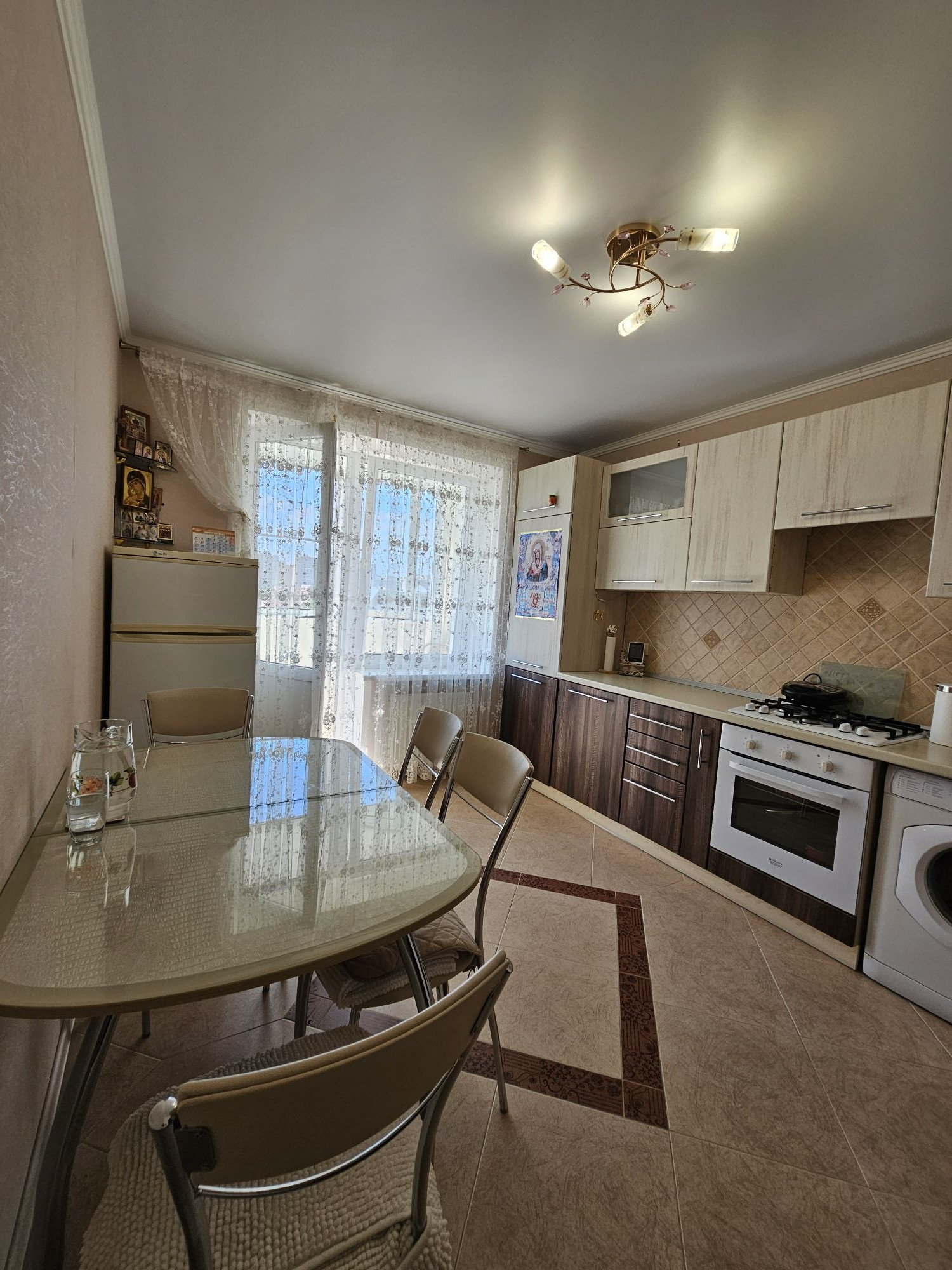 Балкон остеклен,  с выходом из кухни.