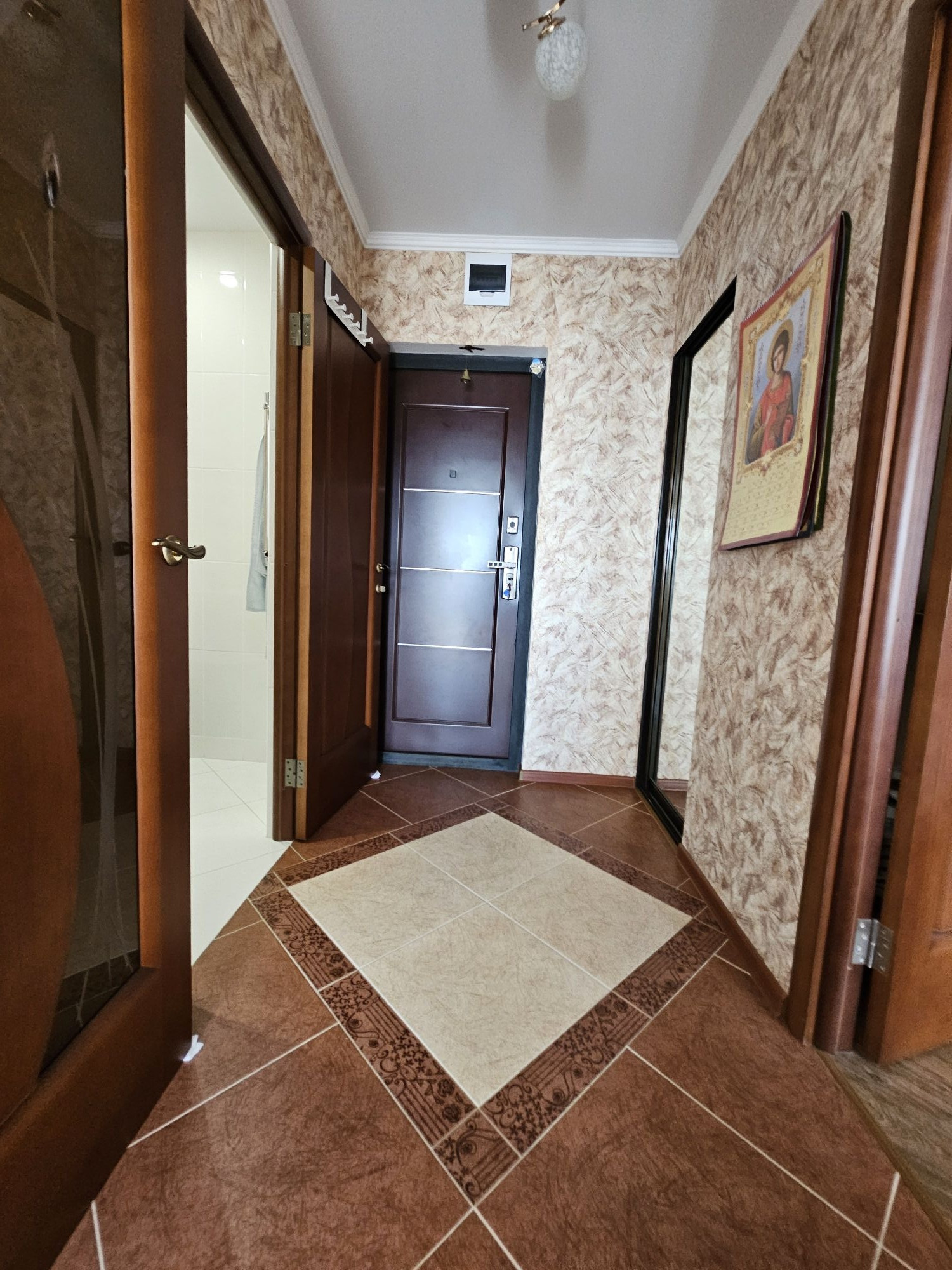 В прихожей есть шкаф-купе для хранения верхней одежды.