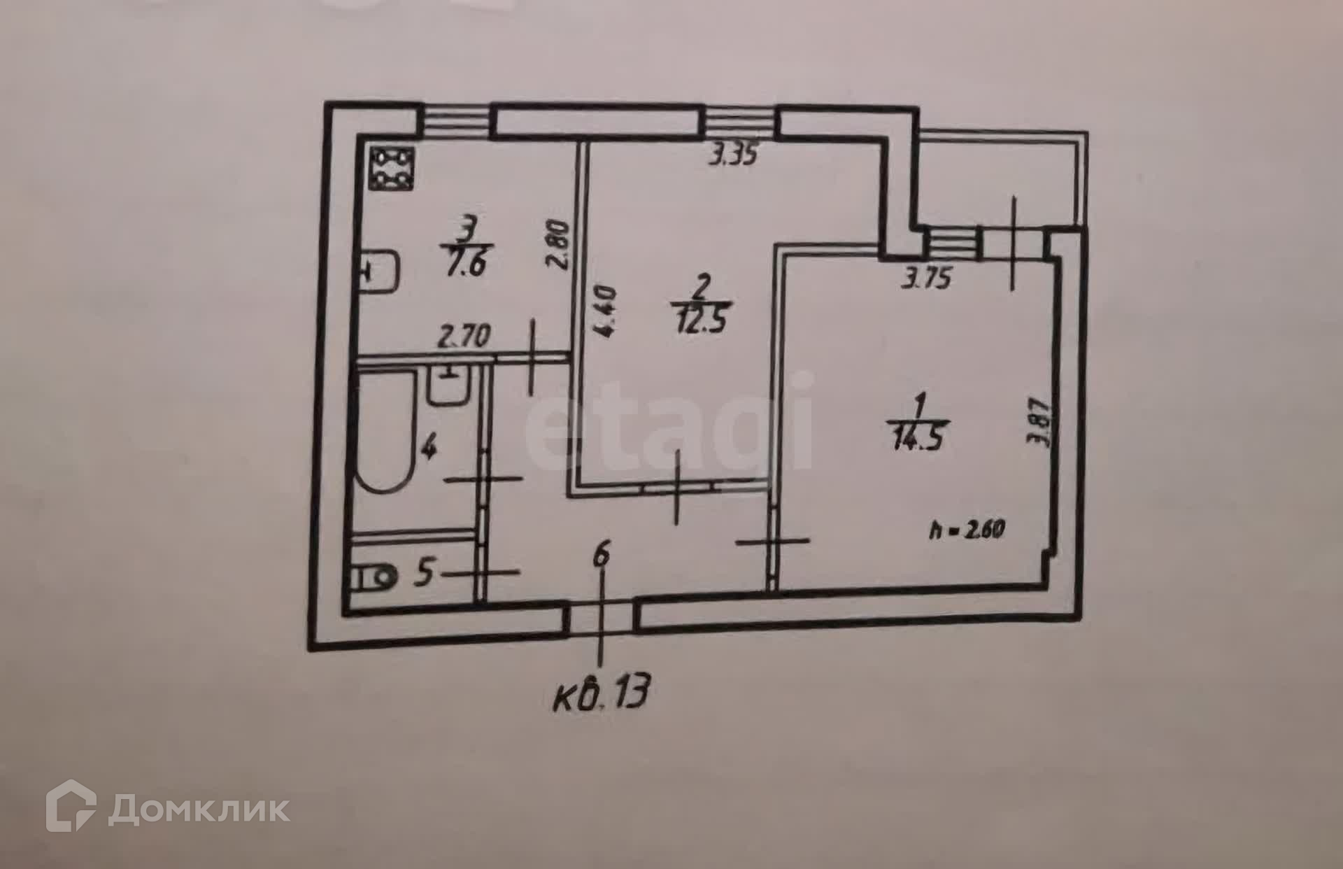 Общая площадь 49.6 м2