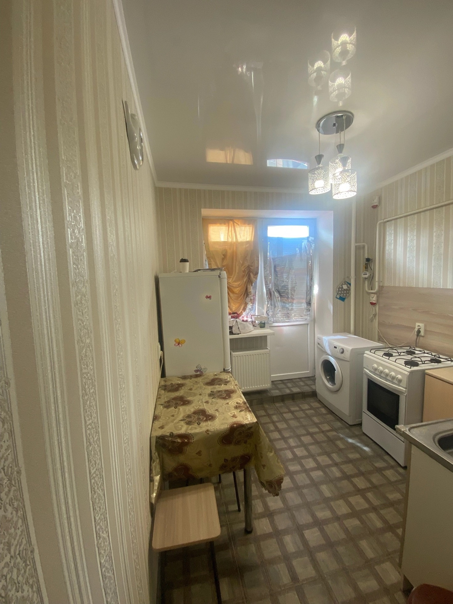 + ОСТАЁТСЯ МЕБЕЛЬ И ТЕХНИКА - кухонный гарнитур, столовая группа, холодильник, стиральная машина, в комнате остается шкаф и диван, в коридоре остается тумба для обуви.