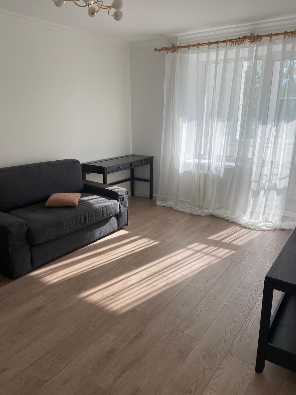 Ремонт в современном стиле, в светлых тонах, на полу ламинат, в сан.узле плитка, дорогая сан.техника, потолки выровнены и покрашены. Новая мебель и техника. После ремонта никто не жил. Квартира видовая - окна выходят на центральный парк.