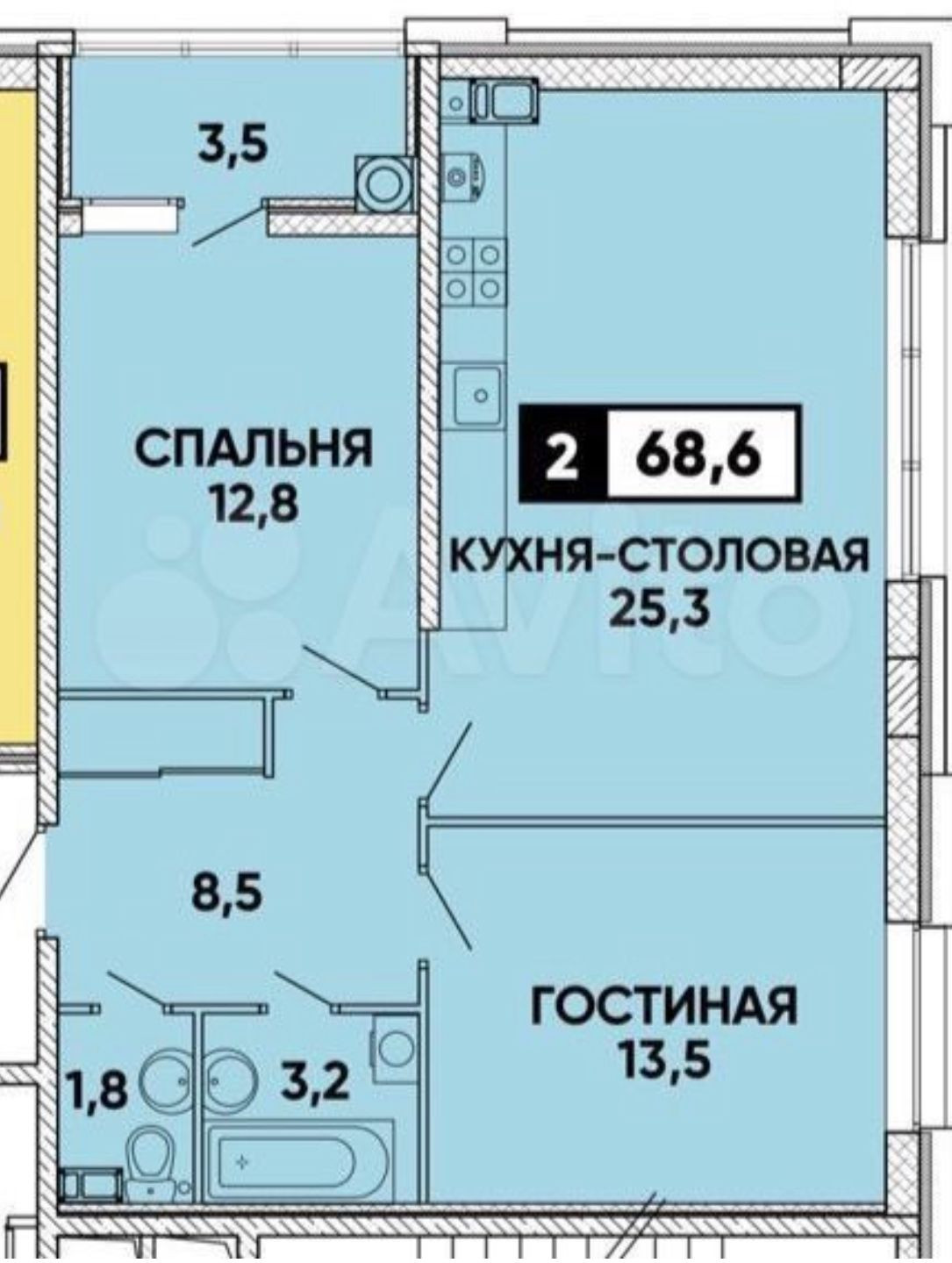 Площадь кухни 25.3 м2