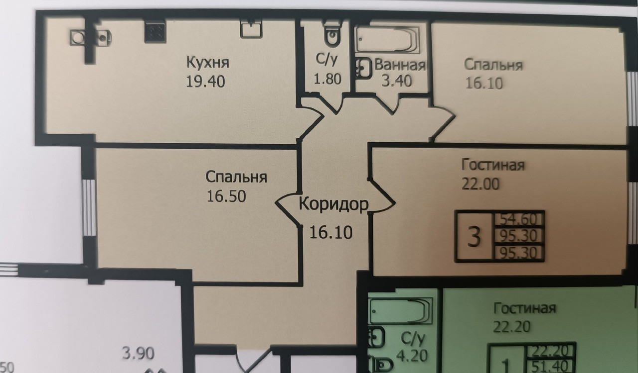 ✅ УЛУЧШЕННАЯ ПЛАНИРОВКА И КОМПЛЕКТАЦИЯ КВАРТИР - высота потолков 2,9 м., общей площадью 99 кв.м., большая кухня 19,4 м2, детская 16,5 м2, спальня 16.1 м2, гостиная 22 м2, просторные жилые комнаты, вместительная прихожая 16.1 м2. Санузел 1.8 м. кв. и 3.8 м.кв. В квартире установлены: двухкамерные стеклопакеты, приборы учëта, теплый пол.