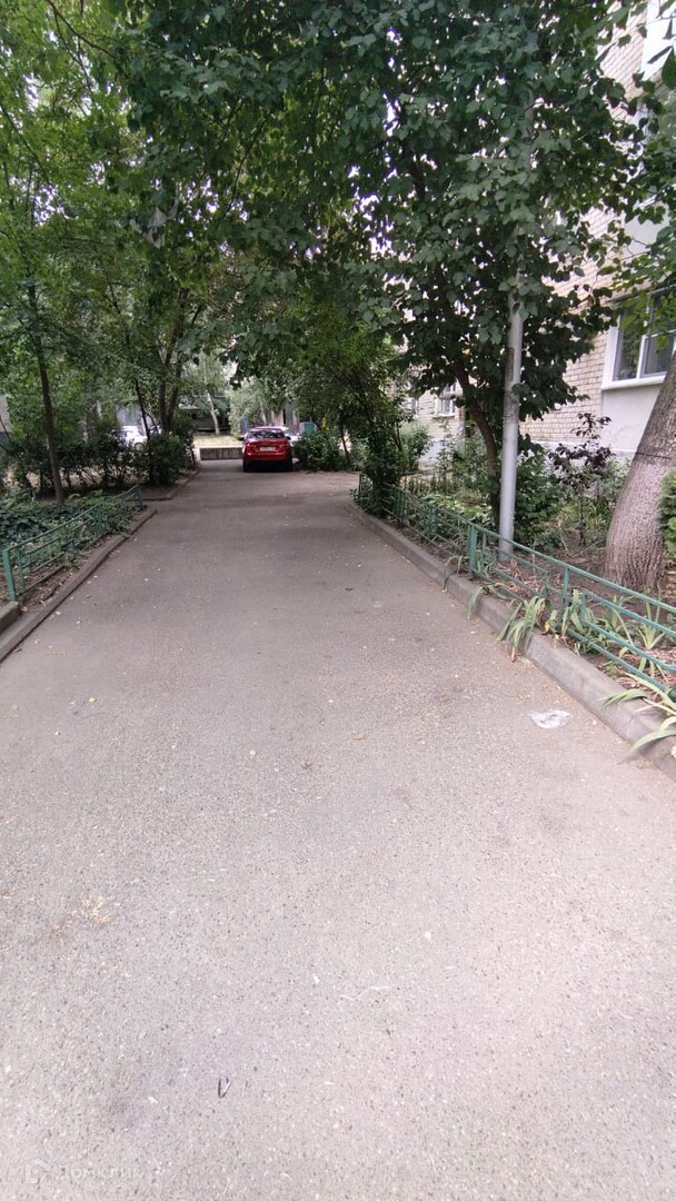---дом кирпичный, внутри квартала, зеленый дворик с лавочками