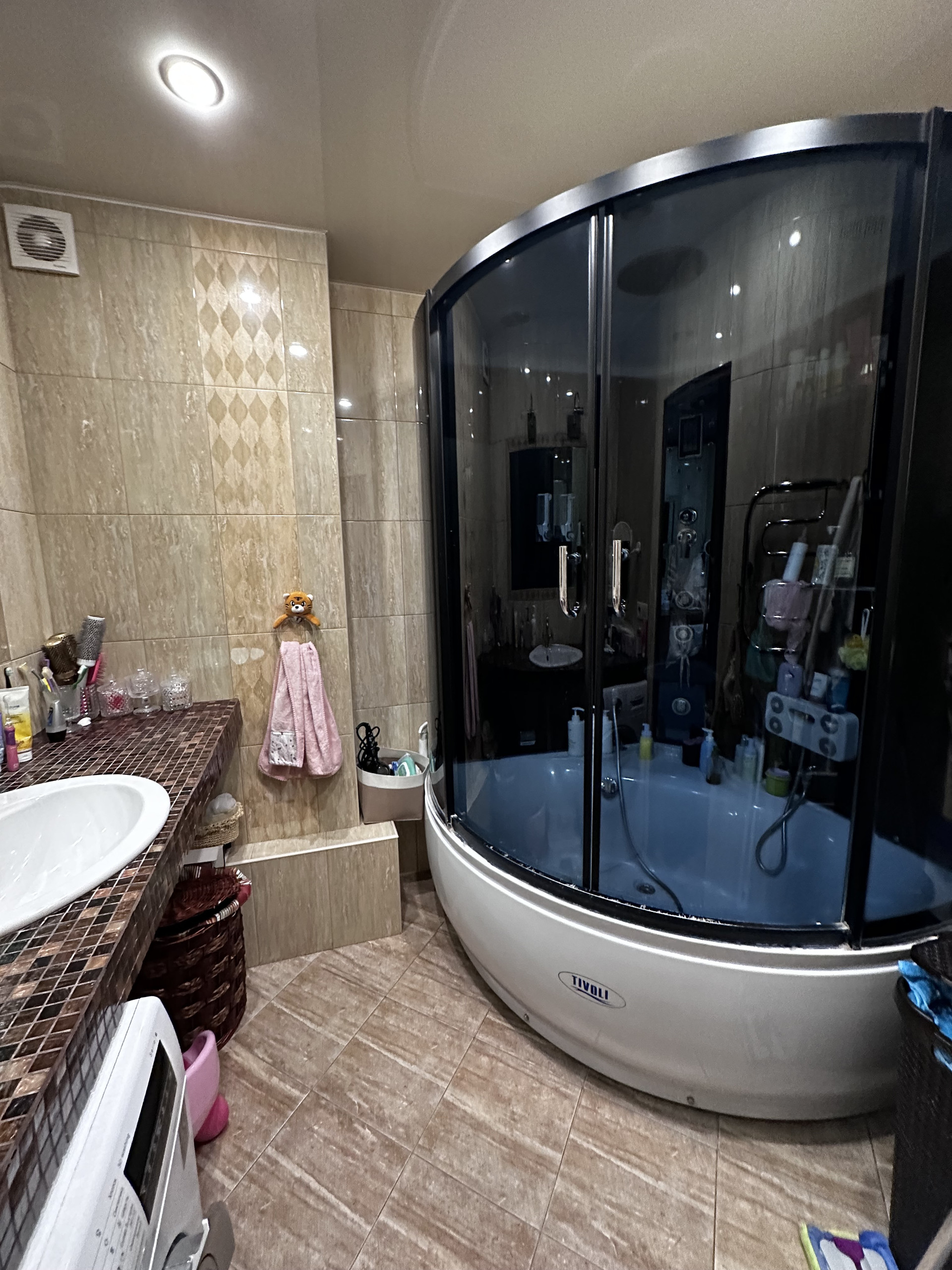 Интерьер квартиры выполнен профессиональными дизайнерами, что придает ей особый шарм и стиль. Раздельный санузел удобен для семейного использования.