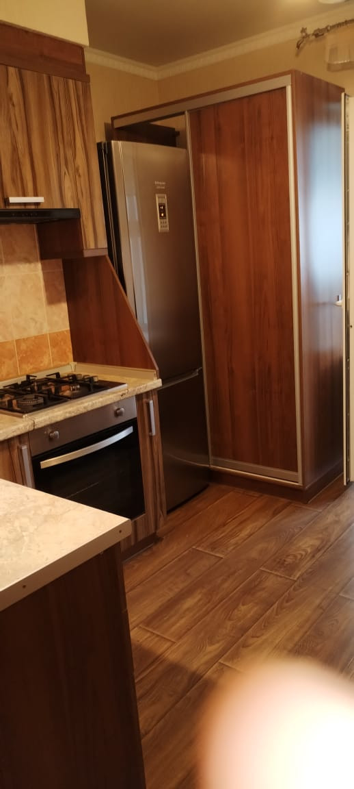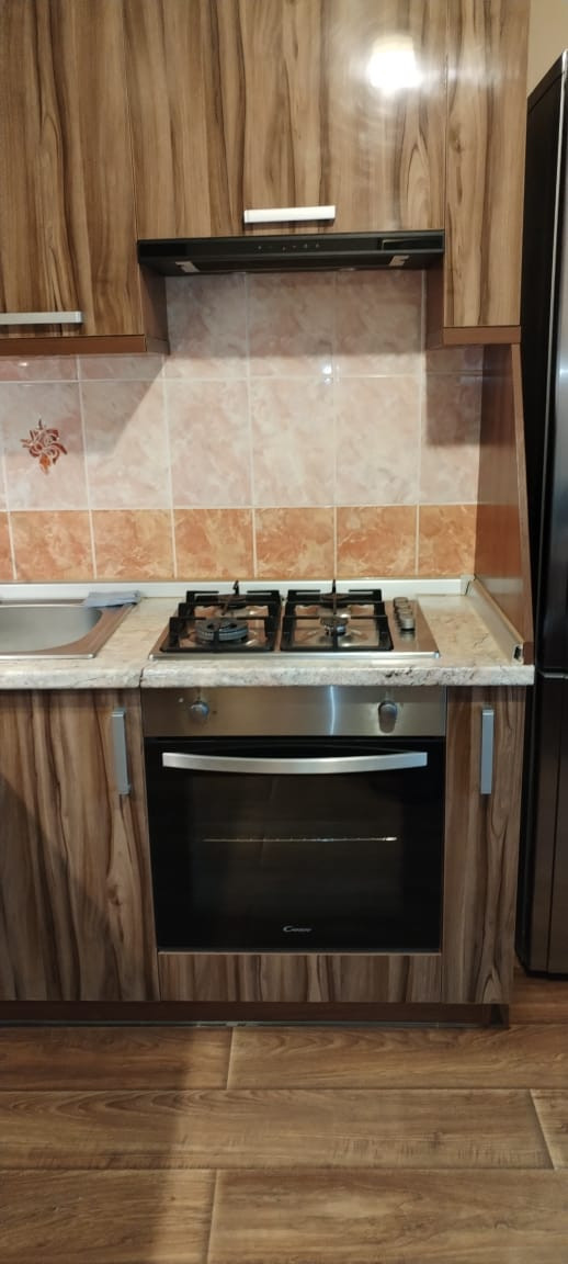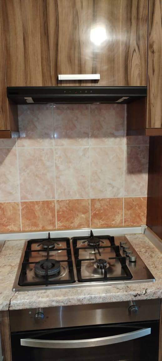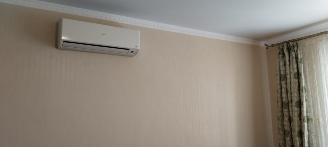 Кондиционер, холодильник, стиральная машина, микроволновка, вытяжка, газовая варочная панель, электрический духовой шкаф (абсолютно новый) на кухне