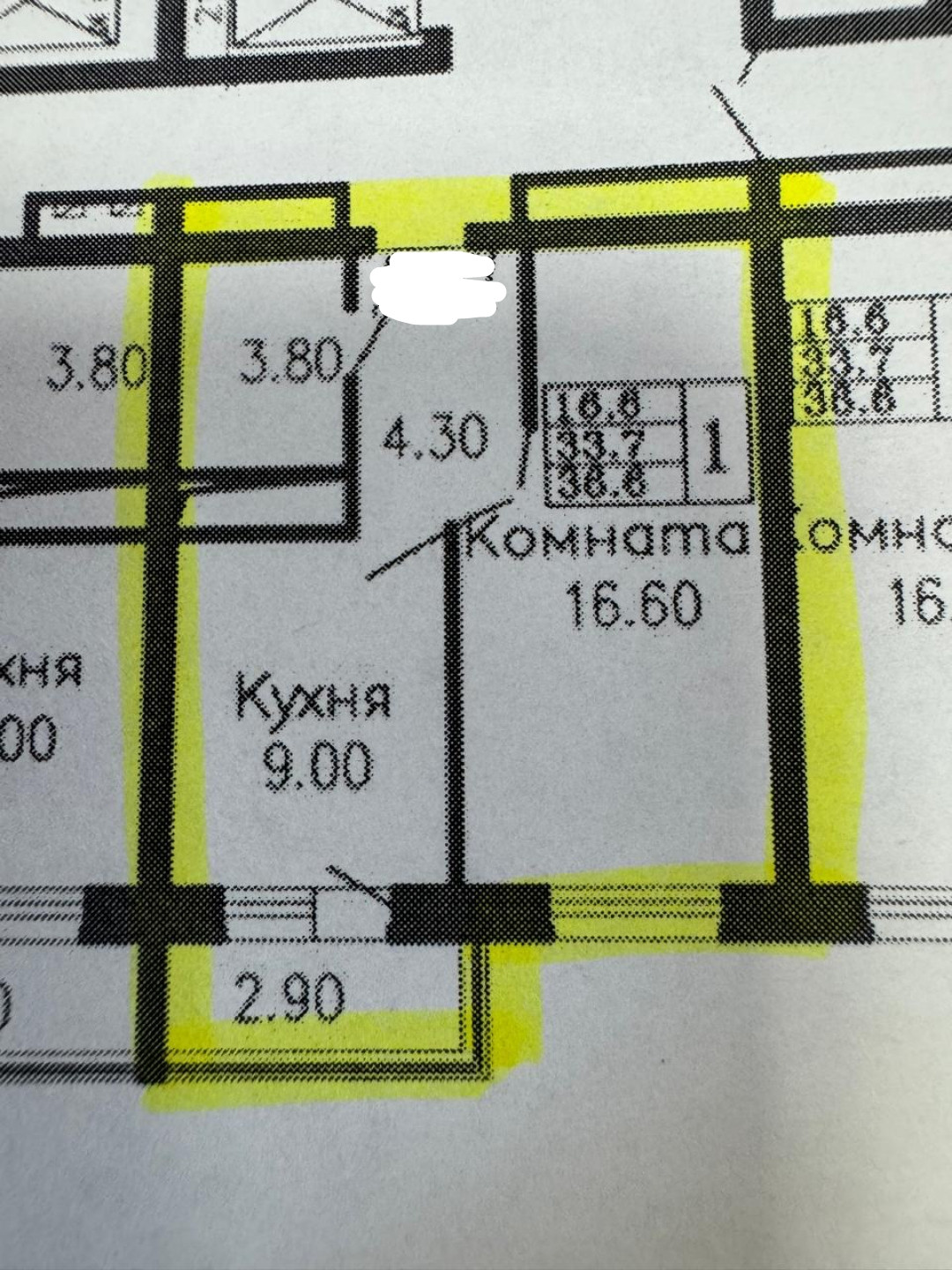 Жилая площадь 16.6 м2