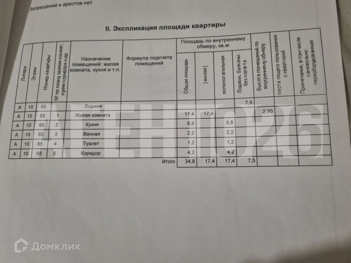 Общая площадь 34.8 м2